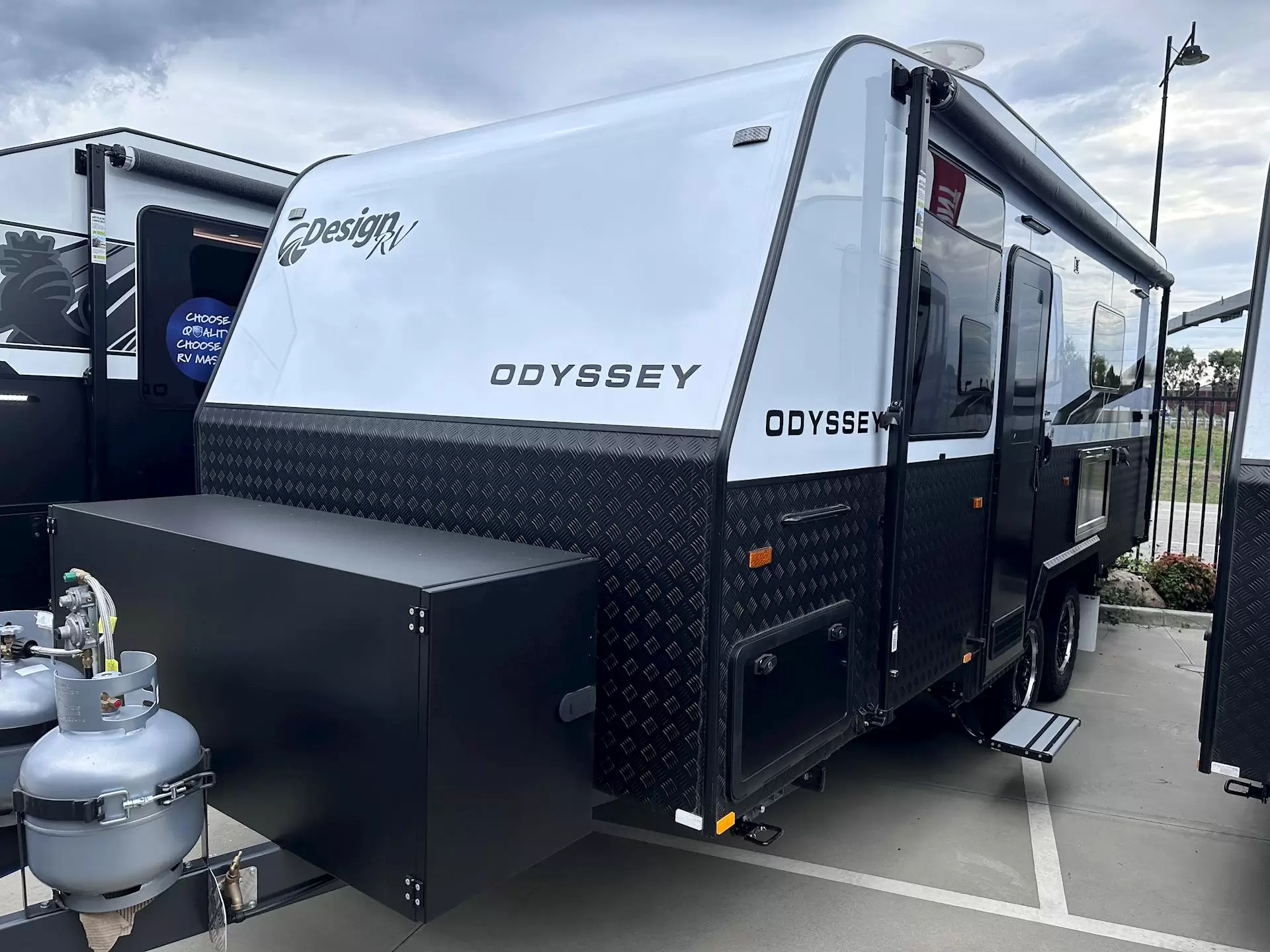 2026 Design RV Odyssey 200M – Premium Off-Grid Luxury CaravanExperience the perfect blend of durability, innovation, and comfort with this 2026 Design RV Odyssey 200M. Built tough for Australian conditions and packed with high-end features, this van is ready to take you anywhere in style. Construction & Exterior:Honeycomb Composite Floor – lightweight, strong, and long-lastingOne-Piece Sandwich Panel Composite RoofHigh Density PVC Polyframe & Front Panelling800mm Raven Coated Checkerplate Protection3mm Aluminium Composite CladdingGalvanised Front Tunnel Boot with Access DoorsJumbo 500 Toolbox with Dual SlideDO35 Hitch – secure and off-road capable8” Jockey Wheel with Clamp Suspension & Towing:Titan Semi-Offroad Independent Suspension3300kg ATM (Dual Axle) / 2750kg (Single Axle)245/75/R16 All Terrain Tyres16” Alloy WheelsReverse Camera12 Pin Trailer Plug (charging fridge cooling) Power & Off-Grid Capability:Projecta PM335C Battery Management System30A DCDC Charger1 x 300Ah Lithium Battery2 x 220W Solar PanelsAnderson Plug for Portable Solar Comfort & Living:Rooftop Reverse Cycle Air ConditionerLED Interior Lighting Throughout2 x Reading Lights with USB (Bedhead)2 x Reading Lights with USB (Lounge)24” TV/DVD ComboKing Jack TV AntennaWashing Machine (included in 2 berth layouts) Kitchen & Appliances:170L Compressor Fridge3 Gas 1 Electric Hotplate with Griller25L MicrowaveFiltered Water Tap at Sink Bathroom & Water System:Full Ensuite with One-Piece Fibreglass ShowerCeramic Bowl Cassette ToiletFlick Mixer TapsGas/Electric 28L Hot Water System2 x 95L Fresh Water Tanks1 x 95L Grey Water TankMains Pressure Water Inlet12V Water PumpThis Odyssey 200M is built for serious touring – whether you're heading off-grid, tackling semi-offroad tracks, or enjoying extended stays in comfort. Brand new 2026 model Enquire now – premium van ready for immediate adventures