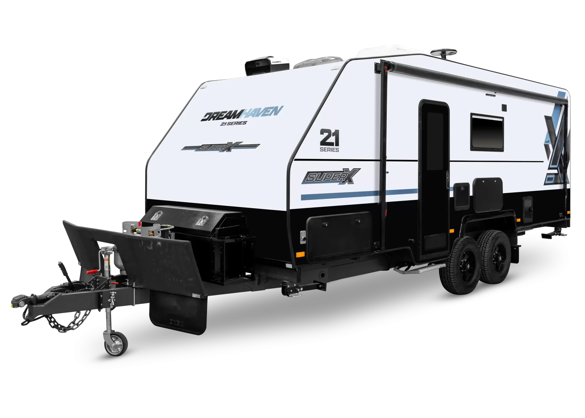 Dreamhaven Caravans I 20 Series Super X I Fully Composite I Australian MadeExperience comfort, style, and Australian craftsmanship with the Dreamhaven 20 Series Super X, proudly built by Crusader Caravans. Featuring a club lounge seating area, this caravan provides a versatile and welcoming living space, while modern LED strip lighting creates a warm and inviting atmosphere throughout.UPGRADED OPTIONS FITTED– Leatherette VinylBuilt on a 150x50mm chassis rail, the 20 Series Super X is supported by a single tuffride 10" drum axle with twin shocks rated to 3300kg ATM and rides on 245/75 R16 TRAZANO tyres, delivering stability and confidence on the road. Practical features such as the aluminium single-step entry, toolbox on the A-frame with two JCH storage boxes, provision for a Gripsport bike rack, DO35 coupling, stoneguard, and dual 9kg gas bottles make this van ready for adventure.The electrical system includes a 200 A/h lithium battery, dual 220W solar panels, wireless reversing camera, King Omnipro antenna, 24"" smart TV on a dual-arm bracket, and a convenient pop-up power point, all managed efficiently through the BmPro Aspero BMS with 2000W Purepro Inverter.The kitchen and appliances are designed for both style and function, with an all-gas cooktop, microwave, LED-lit rangehood, and a 224L Thetford fridge. Comfort is further enhanced by the Houghton HB3500 air conditioner, and a 3.2kg top-load washing machine makes extended trips effortless. Water needs are met with two 110L fresh water tanks, a 110L grey water tank, instantaneous hot water system, and an external shower, providing true off-grid convenience.Externally, the 20 Series Super X features protection decals along the sides, front, and back (500mm), a quality awning, checkerplate-lined tunnel boot, Dometic DRS system, and a tap protector, ensuring durability and practicality on every journey.The Dreamhaven 20 Series Super X is more than a caravan—it’s a fully Australian-built home on wheels, combining thoughtful design, modern conveniences, and durable craftsmanship to make every trip unforgettable.Visit us today at 1457 Sydney Road, Campbellfield to see the Dreamhaven 20 Series Super X in person. Don’t miss your chance to experience comfort, style, and adventure. Contact us now to book a tour or find out more!