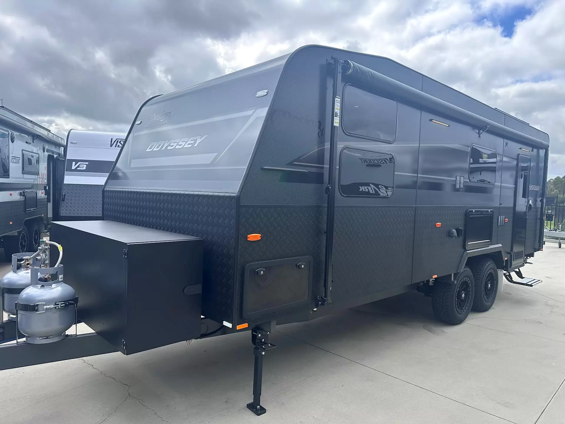 2026 Design RV Odyssey 2210R – Semi Off-Road Luxury with Rear Club Lounge! Travel in comfort and style with the stunning Design RV Odyssey 2210R — featuring the hugely popular rear club lounge, spacious centre bathroom, and private queen bedroom floorplan.Perfect for couples who love touring Australia with extra space and premium finishes.SOUGHT-AFTER REAR CLUB LOUNGESpacious rear club lounge – ideal for relaxing or entertainingLarge windows for natural lightConverts for additional sleeping if neededPremium upholstery and modern interior styling PRIVATE QUEEN BEDROOMIsland queen bedSplit bedroom windows (400 x 800 both sides) for great airflow2 x 12V fans fitted at the foot of the bed on side wallsExcellent wardrobe and overhead storageEnjoy comfort in all climates with smart ventilation and thoughtful design. FULLY EQUIPPED KITCHENStylish cabinetry and ample bench spaceCamec 28L Multi Function Microwave(Microwave / Air Fryer / Convection / Grill in one!)Quality appliances throughout CENTRE BATHROOMSpacious layout with practical storageFreucamp Waterless Toilet – eco-friendly, no chemicals required SEMI OFF-ROAD READY265/70/R17 All-Terrain TyresSemi off-road capability for confident touringStrong, durable construction PREMIUM UPGRADES INCLUDEDCarbon Fibre external claddingGold Pack 265/70/R17 All Terrain TyresX 2 12V Fans in bedroomSplit bedroom windowsCAMEC 28L Multi function oven (AIR FRYER/CONVECTION/GRILL)FRUECAMP Waterless toiletThese sought-after upgrade packs enhance both style and functionality, adding premium finishes and additional features throughout.The 2026 Odyssey 2210R delivers the perfect combination of luxury, space, and semi off-road capability — ideal for extended touring or weekend escapes.