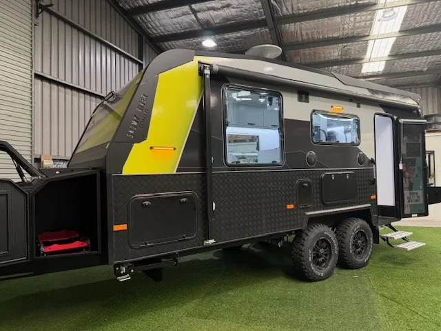 The SRC-21 is a 21ft semi off-road caravan that offers the perfect balance of practicality and style, complete with enhanced features and top-of-the-line amenities that make it an unbeatable choice for road trips and camping. Boasting a brand-new exterior design offering added protection and ample storage space, this caravan is built for life on the road.