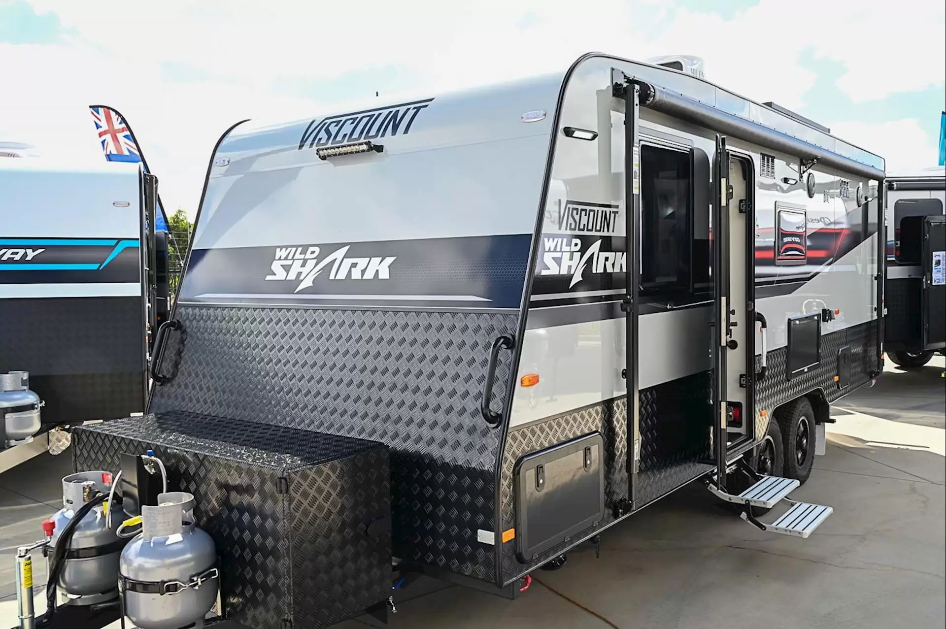 2026 Viscount Wild Shark Triple Bunk – Fully Optioned Family Off-Road Van! Adventure-ready and packed with premium upgrades, this Viscount Wild Shark Triple Bunk is the ultimate family van for touring Australia in comfort and confidence. FAMILY-FRIENDLY TRIPLE BUNK LAYOUTSpacious triple bunk beds – perfect for the kidsComfortable main queen bedFunctional dinette with MAPA table leg for easy adjustment and extra flexibilitySmart storage throughoutOFF-GRID POWER & SOLAR200Ah lithium battery2 x 200W solar panelsEfficient 12V system for extended free camping224L compressor fridge – massive capacity for long trips4 burner cooktop, grill and ovenStay off-grid longer with reliable, efficient power. COMFORT & CONVENIENCEInstantaneous hot water system – hot showers anytimeBuilt-in washing machineModern kitchen with generous storageLarge 224L compressor fridge for family touring OFF-ROAD CAPABILITYCruisemaster ATX coil suspension – smooth towing over rough terrainDO35 hitch for superior articulationTB 1400 toolbox with slide – ideal for generator or extra storageHeavy-duty chassis constructionBuilt tough for off-grid adventures while maintaining on-road comfort. OUTDOOR LIVING FEATURESExterior floodlights for campsite visibilityPractical storage solutionsDesigned for relaxed family touringThis 2026 Wild Shark Triple Bunk is a fully equipped, off-road family van with premium upgrades already fitted — just hitch up and go.