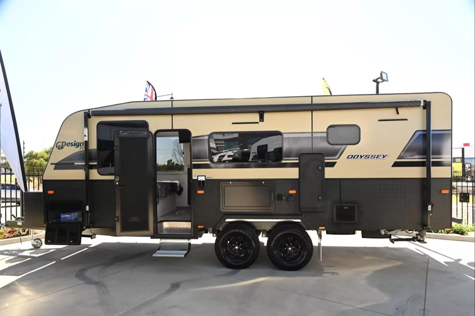 2026 Design RV Odyssey 200M Van – Fully Equipped!Built for serious touring with the whole crew, this 2026 Design RV Odyssey 200M caravan combines rugged capability with smart interior design and excellent off-grid power. Perfect for couples wanting comfort, space, and reliability on and off the road.Standout Features:2 x 200W solar panels300Ah lithium batteryProjecta PM335 battery management systemIndependent suspension for smooth, confident towingDO35 hitchRear camera for easy reversing16-inch all-terrain wheels & tyresUpsized ensuiteIsland queen bedL-shaped lounge with drop-down table legLarge pantry with excellent storageJumbo front toolboxExternal bug lights – perfect for outdoor eveningsThoughtfully laid out and well finished, the Odyssey 200M offers a great balance of off-grid capability, comfort, and tough Australian touring design.Ready to hook up and go.