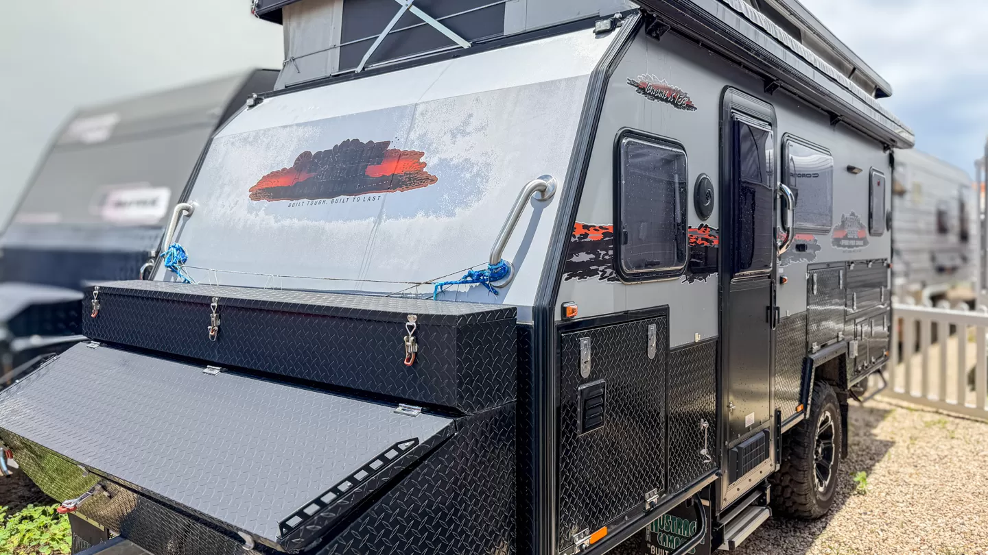 Engineered for Australia’s toughest landscapes, the SRP-14 14ft pop-top caravan for 2 combines ALOPEX durability with intelligent design. Its reinforced frame, insulated tent, electric roof, and dual water tanks ensure dependable performance and comfort, making every off-grid journey secure, efficient, and ready for adventure no matter where you roam.