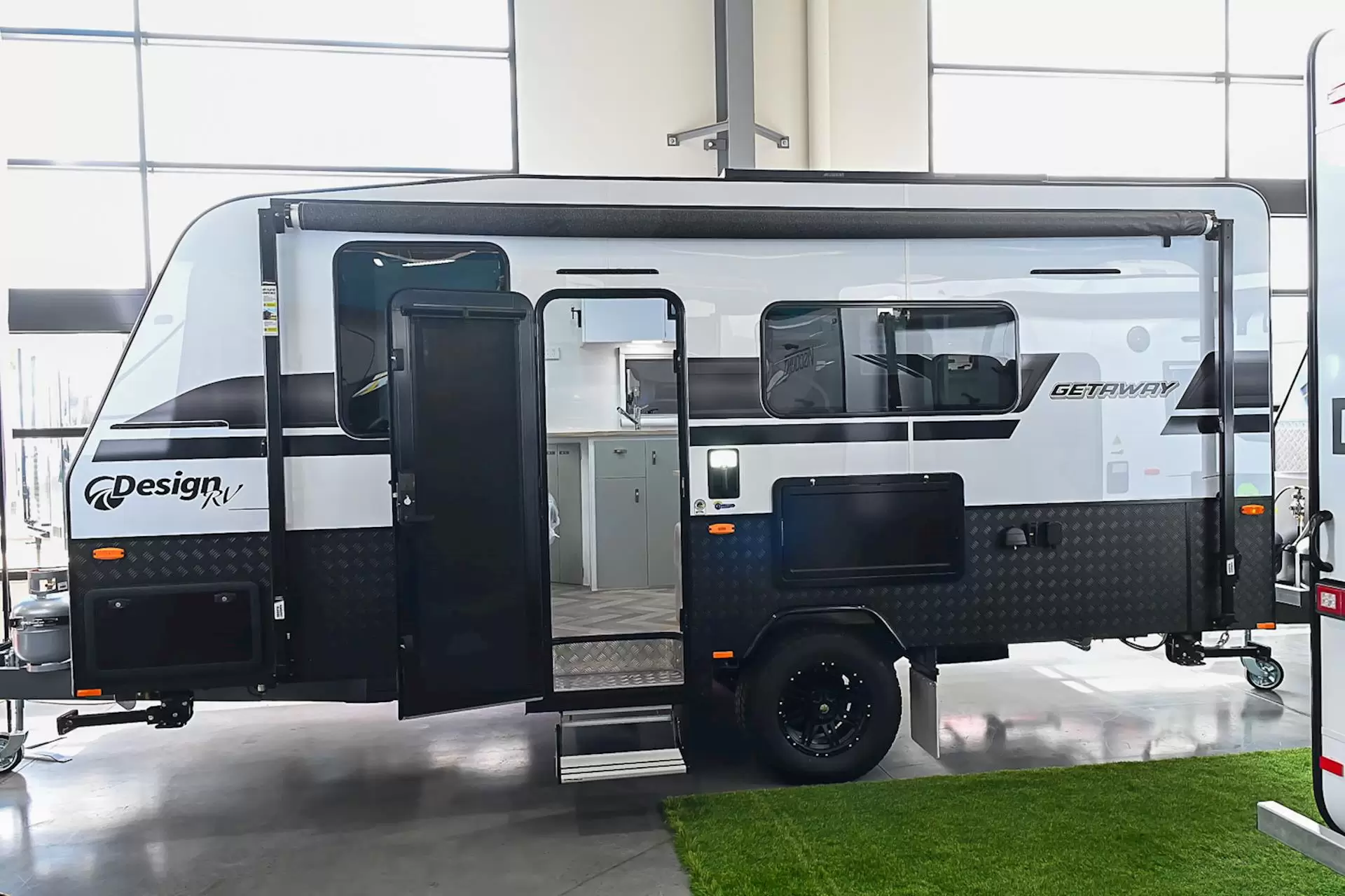 Standard Getaway Features include;Full ensuite with separate shower and toiletSupagal Australian Made Heavy Duty Chassis15” Alloy WheelsWater Tank StoneguardsComposite Sandwich Panel RoofHigh Density PVC Frame and Panelling to the Front Quarter Aluminium composite CladdingDouble Glazed Push-out Windows and Integrated BlindsGalvanised Front Tunnel Boot with Access Doors2 x LED Roof Skylight with Blinds and Flyscreens (1 in Bedroom 1 in Lounge)Complete Poly FloorFull Laminate Splashback and BenchtopsRecessed Cook Top with Lid Over StoveInnerspring Mattress – Queen 6’2” MasterCafe Seating with Tri-fold table2 x 95L Water Tanks2 x 9Kg Gas BottlesGas/Electric Hot Water SystemFiltered Water Tap at Kitchen SinkExternal Gas Bayonet near Front Tunnel Boot300 amp hour Lithium Battery2 x 220 Solar PanelsProjecta PM235c Smart ChargerOmni-Directional Digital Antenna170l Compressor FridgeRoof-top Reverse Cycle Air ConditioningMicrowave Oven12V Rangehood3 x Gas and 1 x 240 Hotplates with Griller24” DVD Combo3 x LED External Awning Lights (Amber/White)LED Interior Lighting Throughout2 x LED Reading Lights in Bedroom2 x LED Reading Lights in Lounge and 1 Per BunkExternal TV Bracket12 Pin Trailer PlugPower Points (2 x Bedroom, 1 x Kitchen, 1 x Lounge, Ensuite)240V 15amp Inlet And 240V 10amp Outlet Circuit Breaker And Earth Leakage12v/USB Socket at Kitchen Table, Outside Table and BunksTV Coaxial Point at Outside TableEntry Light and Grab Handle