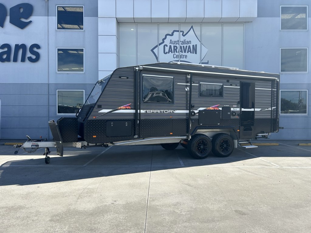 DON'T DELAY CALL NOW - 03 8339 9100Australian Caravan Centre - Cnr Hume Hwy & Grasslands Ave, Craigieburn, VIC 3064Sales Opening hours: Monday to Friday 9am - 5pm Saturday 9am - 4pm Sunday: CLOSED2018 Supreme Territory59,990 Drive Away!!The Supreme Territory caravan has been built to tackle Australia's great outdoors in comfort and style. This fine example of a Supreme Territory will not disappoint.This van has a Queen lift-up bed, café style seating microwave, cooktop, grill and oven, a large 2-door fridge/freezer, stereo, roof-mounted air conditioner, plenty of storage and a full ensuite, complete with a top loader washing machine. On the outside you will find an extended a-frame, toolbox, 2 x 9kg gas bottles, DO35 hitch, 6" a-frame, roll-out awning, LED lights, solar panels, house battery pack, TV antenna, skylight, TV box, external shower, front tunnel boot, scrub bars, internal and external speakers and a jerry can holder.This van also has independent suspension and is ready to travel around this great land of ours. All our caravans come with a workshop test and full handover for peace of mind.