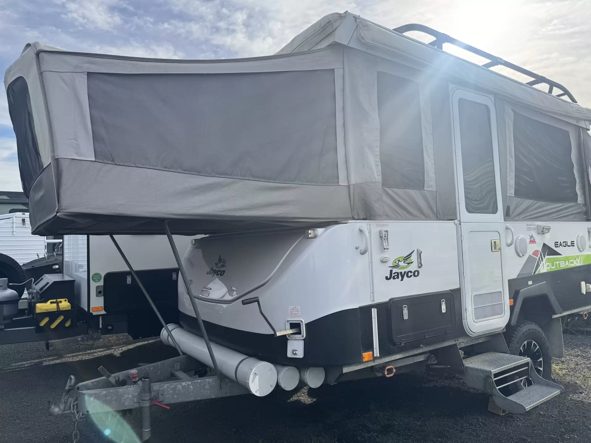 2014 Jayco Eagle Camper This 2014 Jayco Eagle has been fantastic and reliable. It’s easy and smooth to tow with the Jaytech coil suspension whilst offering a surprising amount of space and comfort once you have reached your destination. Key Features Include: - Rego valid until November 2026 - Sleeps 6 comfortably (Queen, double beds and additional convertible table). - Easy wind-up design (Set up camp in minutes). - 80L water tank - Solar panel setup on roof - Skylight - Awning for extra outdoor living space - 3-way fridge (gas, electric, 12V) - Gas and electric cooktop and grill - 9KG gas bottle fitted in van with additional draw bar gas outlet - 240V plug in power & battery system - Plenty of internal storage for food, gear & clothing (Additional racking has been added) - Tregg hitch fitted - Comes with a bike rack rear mount - Curtains and fly screens for privacy and ventilation - Lightweight and easy to tow great as a first campervan or the experienced campers Located 2 house East of Melbourne