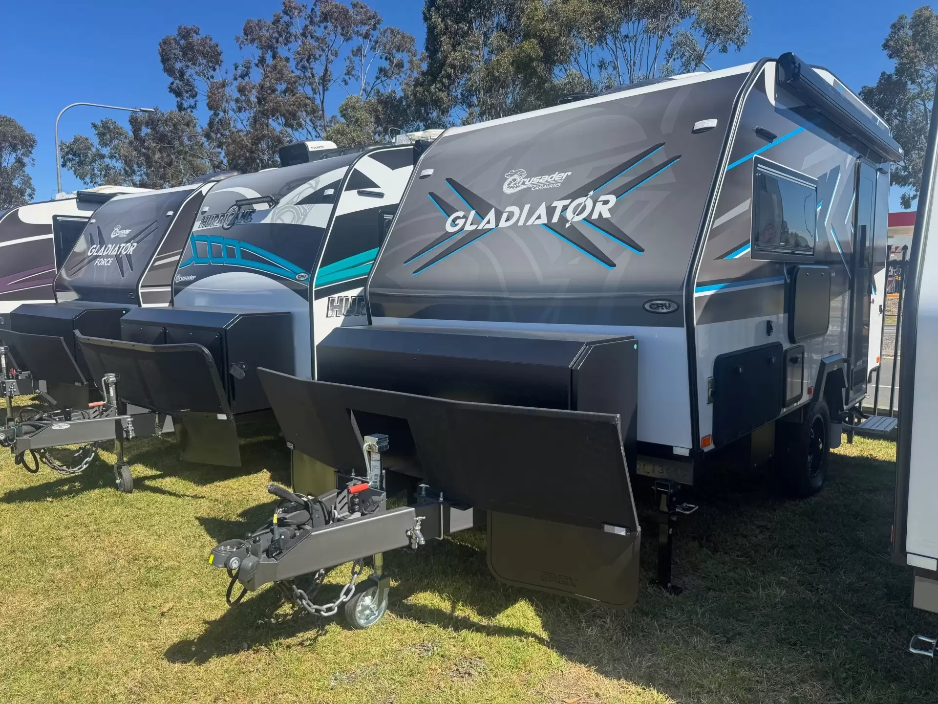 * * * * * * * PRE-EASTER PLATE CLEARANCE SALE * * * * * * * * * * * * NEVER BEEN DONE, AND WILL NEVER BE DONE AGAIN! * * * * ** * * WAS 71,701, NOW 64,990 * * *Crusader Caravans proudly presents the revolutionary 2025 model range. Completely reimagined, this highly anticipated line up offers a perfect blend of innovation, comfort, and durability, whether you are a seasoned traveller or just beginning your caravaning journey.Following the incredible honour of winning Caravan Manufacturer of the Year for the fourth time, Crusader continues to set the standard in the industry. With over 30 unique models, the 2025 range caters to all adventurers, offering a variety of features and price points to suit your needs.The CRV range allows you to have the luxury and simplicity of caravaning in a variety of layouts, while keeping it compact and easy to move around. The range allows caravaners to have a van suited to their road trips. The CRV Gladiator MY25 allows you to enjoy comfort and compact style, giving you a cozy feeling no matter where you are in the country, while enjoying your off-road adventures in this 12ft caravan, fitted with an array of standard features, which makes any trip a breeze!The CRV Gladiator MY25 comes standard with the following options:•Full Composite Sides, Roof & Flooring•2x 110L Fresh Water Tank•1x 110L Grey Water Tank•1x 135a/h Lithium Battery•2x 200w Solar Panel•BMPRO Aspero Electrical System•2.7T Tuffride Independent Coil Suspension with 12” Brakes•16″ Tyres and Alloy Wheels•1x Spare Wheel and Bracket on Rear Bumper Bar•Single Axle•King OmniPro Antenna•Toolbox with 2x Gas Bottle Slide & BBQ Slide•Stone Guard on A-Frame•Starlink Provisions•DO35 Hitch•Front Tunnel Boot Lined with Checker Plate•1x Slide Out Utility Drawer•Single Pull-Out Step•Double Glazed Windows•2x 9kg Gas Bottles•1x Cabin Fan•24″ Smart TV•Swift 4x Gas Burner with Mini Grill and Microwave Combo•Kitchen & Ensuite Mixer Tap•Water Filter•Soft Close Drawer Runners•2x Swivel Table Leg•Houghton HB2400•1x Haven Skylight in Main Area•170L Haven Compressor Fridge•Wireless Single Rear View Camera•External TV Hatch•Tap on A-Frame•Heavy Duty Jack•Gas / Electric Hot Water System•2x Single 6’2 Innerspring MattressTo learn more about this caravan, please enquire with us and one of our trusted sales technicians will be happy to assist with any enquiries you may have.All possible attempts have been made to ensure the above information is accurate and correct, however, the accuracy cannot be guaranteed. Please make sure you confirm all item details/features with the seller before you decide. Prices quoted may not include Fees & Charges that may be due on this item. Listed features are available on most items. Contact the selling Dealer for specific details & weights.