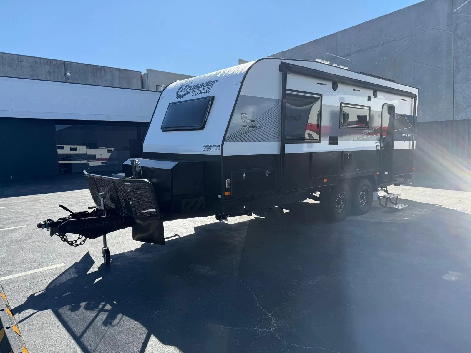* * * * * * * PRE-EASTER PLATE CLEARANCE SALE * * * * * * * * * * * * NEVER BEEN DONE, AND WILL NEVER BE DONE AGAIN! * * * * ** * * WAS 115,531, NOW 93,633 * * *Crusader Caravans is a multi-award-winning manufacturer of excellence and are Australia's leading supplier of exceptionally built caravans, manufactured in Melbourne Victoria. Following the incredible honour of winning Caravan Manufacturer of the Year for the fourth time, Crusader continues to set the standard in the industry. All new Crusader Caravans are 100% full composite, making them lighter, stronger and better insulated, making it the ideal van for your trips around this beautiful country.The Excalibur range allows you to have Off-Road luxury and enjoy our amazing country in upmost style and comfort. The Excalibur Duke MY24 allows you to enjoy space and solace, while enjoying your thrilling adventures in this 21ft caravan, fitted with an array of standard features, which makes any trip a breeze!The Excalibur Duke MY24 comes standard with the following options:•Full Composite Sides, Roof & Flooring•2x 95L Fresh Water Tanks•1x 95L Grey Water Tank•1x 200a/h Lithium Battery•3x 220w Solar Panels•BMPRO BP35 with TREK 3 Display•3.7T Independent Coil Suspension with 12″ Brakes•16″ Tyres and Alloy Wheels•1x Spare Wheel and Bracket on Rear Bumper Bar•Tandem Axle•Winegard Antenna•Toolbox with Generator Slide, BBQ Slide & 2x Jerry Can Holders•Stoneguard•X-Country Shroud on A-Frame•Double Electric Step•DO-35 Hitch•Front Tunnel Boot Lined with Checker Plate•All-Terrain Decals•2x 9kg Gas Bottles•2x Cabin Fans•27″ Smart TV•Recessed Cooktop with Mini Grill & Oven•All Terrain Pack•Cafe Dinette Seating with Tri-Fold Table•DVD / USB Player•IBIS 4 Air Conditioner•224L Dometic Compressor Fridge•Front Loader Washing Machine•23L Microwave•Single Rear View Camera•External TV Hatch•External Shower•Tap on A-Frame•Heavy Duty Jack•Gas / Electric Hot Water System•6’4 Innerspring MattressTo learn more about this caravan, please enquire with us and one of our trusted sales technicians will be happy to assist with any enquiries you may have.All possible attempts have been made to ensure the above information is accurate and correct, however, the accuracy cannot be guaranteed. Please make sure you confirm all item details/features with the seller before you decide. Prices quoted may not include Fees & Charges that may be due on this item. Listed features are available on most items. Contact the selling Dealer for specific details & weights.