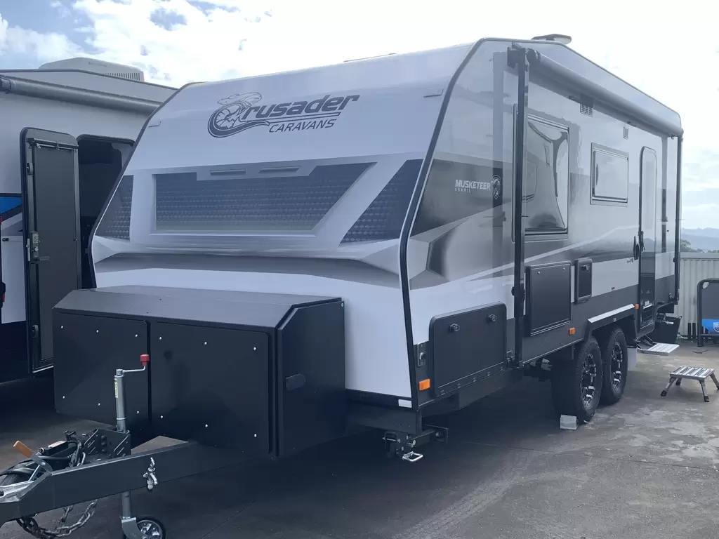 2025 PLATE STOCK CLEARANCE SALE!! **WAS 100,490 NOW 94,990**Inspired by our customers’ desire for a sophisticated yet practical caravan, we’ve created the Musketeer range. It’s more than just adaptable; it’s a statement of style and unrivaled functionality. This range is designed to impress, with unique features that set it apart from the crowd.Enjoy the best of both worlds, from smooth highways to more challenging terrains, thanks to the Musketeer’s independent suspension, delivering exceptional handling and comfort.The Musketeer’s striking exterior features a bold new design with angular lines, exuding a sense of dynamism and sophistication. This contemporary look creates a distinctive Crusader signature.Built with EcoLite composite construction, the Musketeer offers remarkable strength, durability, and insulation. The 40mm one-piece front, roof, and back wall construction sets a new benchmark for the industry.Some of the features on this van include:*Tuff ride independent suspension*Toolbox*Houghton Belaire Air Con*Washing Machine*150Ah Lithium Battery*2x200w Solar*Victron Electrical systemAnd much much more !!!We are located at Gateshead, 15 minutes south of the Newcastle CBD, Newcastle's biggest and ONLY Crusader Caravan Dealership. Offering both new and used vans. We can also cater to all of your service, insurance repair and spare parts needs