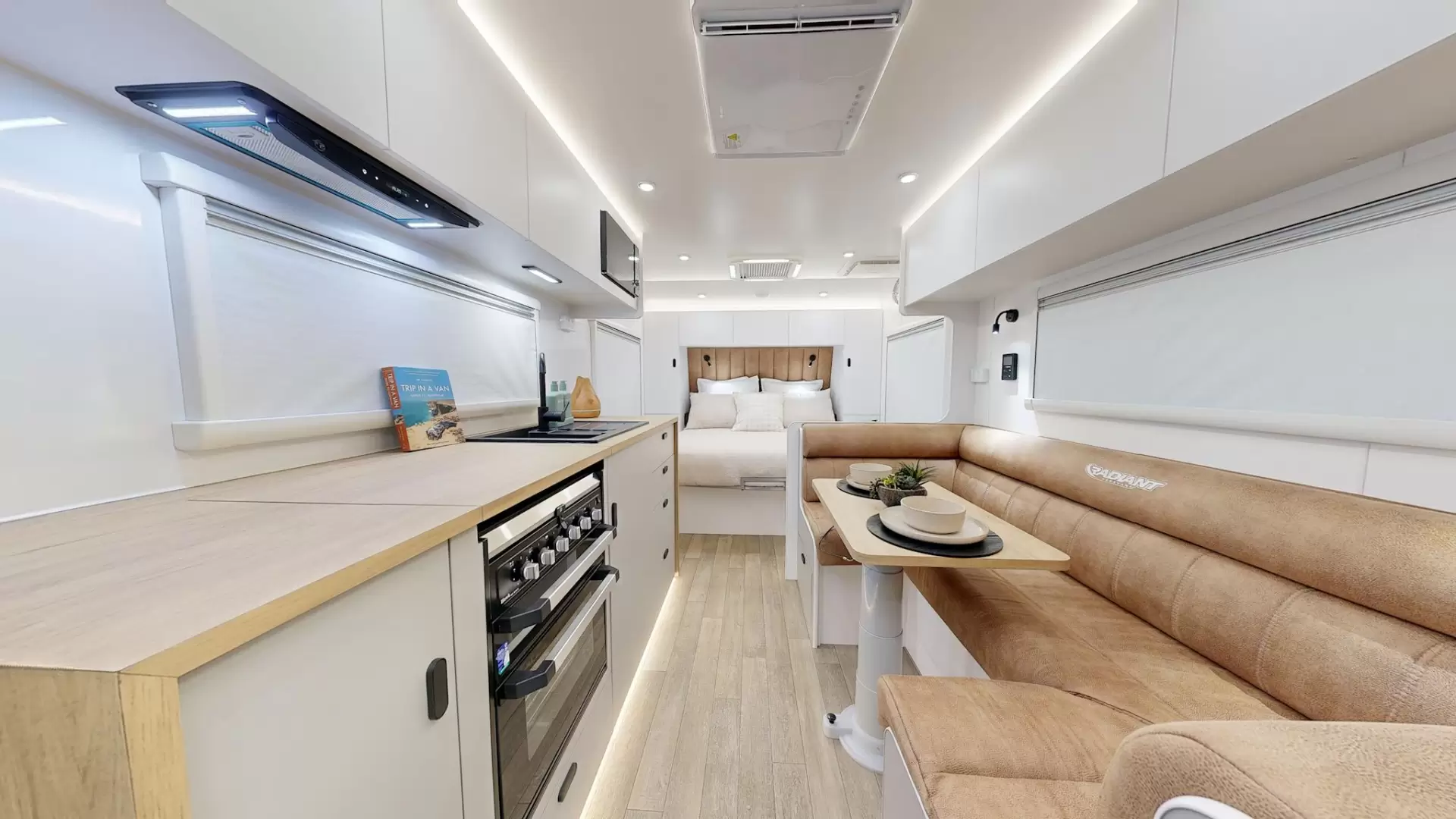FULL OFF-ROAD WITH LITHIUM AND LOTS OF SOLAR- BEST VAULE VAN IN AUSTRALIA 19.6FT FAMILY FULL OFF-ROAD Key FeaturesTUFF RIDE Independent coil suspension 1 x 200AH Lithium batteries3x 200w SOLAR panelHoneycomb flooringOne piece composite roofDOMETIC Dust Reduction System16” All terrain tyresLarge Front Toolbox2 x 105L Fresh water tanks1 x 105L Grey Water tankFront stone guard 12" BrakesOutside TV Box6 ”Heavy duty A- FrameWater fall Bench topsDO35 CouplingFUSION RA60 Radio188L Fridge CompressorBM PRO Battery plus35-II-HA with OdysseyInverter ProvisionSafety Dave reverse camera with Car monitor kitDiscover the unparalleled quality and exceptional value of Radiant Caravans, the best value caravan in Australia for under 100k. Designed with premium features and cutting-edge technology, this caravan ensures a luxurious and comfortable travel experience.Featuring the TUFF RIDE independent coil suspension and 16” all-terrain tyres, the Radiant caravan promises you the freedom to take this van anywhere offroad. It is equipped with a 200AH lithium battery and 3x 200W solar panels, offering reliable power for your free camping adventures. The honeycomb flooring and one-piece composite roof enhance durability and longevity. This caravan comes with a large front toolbox, a 100L grey water tank, and a front stone guard for added convenience and protection. Inside, you'll find waterfall bench tops and a spacious 188L fridge compressor for a touch of luxury. THIS VAN HAS BEEN UPGRADED WITH: (NOT INCLUDED IN PRICE)WALL MOUNTED WASHING MACHINE & THREE DRAWERS IN THE BUNK ROBE MIRROR ON SHOWER DOORMATTE BLACK DECALSFULL LIST OF FEATURES ***CHASSIS***TUFF RIDE Independent coil suspension - ATM 3500 KG16” All terrain tyresLarge Front Toolbox12" Brakes6 ”Heavy duty A- FrameHoneycomb flooringDO35 CouplingSupa gal Chassis2x9kg Gas bottlesDouble alloy step3 Arm heavy duty bumper bar with wood storageFront stone guard Jockey WheelBmpro TrailsafeGalvanized protection to water tanksExtended A frame - 1900mmDrop down stabilizer legsMud Flaps***ELECTRICAL***1 x 200AH Lithium batteries3x 200w SOLAR panelBM PRO Battery plus35-II-HA with OdysseyInverter ProvisionSafety Dave reverse camera with Car monitor kit1 x 12v fan and 1 in each bunksLED ceiling down lights throughoutGrey Anderson Plug 50 amp12 Pin Flat car plug2 x reading lights with US B in bedroom and seating areaTv Co-ax external point1x Large heavy duty Annex lights 2 x Lights in tunnel boot LED Taillights240v 15amp inlet and 240v and 10 amp outletTV antennaLed light over sink and vanityLed strip on overhead and under kitchen***PLUMBING***2 x 105L Fresh water tanks1 x 105L Grey Water tankBlack tap ware throughoutFibreglass showerCassette toiletA-Frame mains pressure tapExternal gas bayonetSwift hot water systemFlick Mixer tapsExternal ShowerDigital water level gaugeA- Frame tap guardLockable water fillersMains Pressure inlet12v Shurflo water pump***EXTNERAL***One piece composite roofDOMETIC Dust Reduction SystemOutside TV BoxRoll out AwningFront tunnel bootFold down picnic table2 x LED framed sky hatchesBubble entry door handleDouble glazed large Ranger windowsMain Entry doorCoast to coast access doorHigh quality vinyl decals12v Fan and LED hatch to shower and toilet***INTERNAL***Water fall Bench topsFrosted shower doorCeramic Vanity basinChoice of 2 or 3 bunksKitchen PantriesEast West Queen bed with innerspring mattressEnsuite mirrorNooks in Robes with USB US B C and 240Hidden handles and soft open ga s struts on overheadsSoft close drawersRecessed cooktop with lift-top over stoveUpholstered bed headTowel railToilet Roll holderInternal tv bracketUnder bed storage***APPLIANCES***FUSION RA60 Radio188L Fridge CompressorWashing machine24” smart LED TVMicrowave12v RangehoodAir conditionerSwift 3 Gas/1 Electric, Grill and ovenTare: 2593 KGATM: 3500 KGBALL: 196KGInternal Size: 19.6 FT External Size: 19.6 FTExplore our latest caravan models, now available with financing options. We accept trade-ins and offer consignment services. Additionally, we provide servicing, maintenance, and a wide range of accessories.Our Hours:Monday to Friday: 9:00 am - 5:00 pmSaturday: 9:00 am - 3:00 pmPlease note that we are closed on public holidaysPLEASE NOTE PRICE IS BASED ON PICK UP MELBOURNEADD 8,000 FOR WA FREIGHT AND REGOADD 3,000 FOR NSW FREIGHT AND REGOABOUT USStep into a new age of travel with our exceptional caravan selection, where urban sophistication meets the sunseeker's delight. As you journey through uncharted landscapes, our caravans redefine what's possible. From family getaways to off-road escapes, our models offer a retreat from the ordinary. Picture yourself as a true Lotus, blossoming amidst diverse terrains with grace and elegance, whether you're conquering tough landscapes or setting up bunks for a cozy night's sleep.Our caravans are crafted with a supreme level of design and care, standing as masterpieces ready to withstand the test of time, the rugged outdoors, and the discerning eye of design enthusiasts. Just like a Snowy River carving its path, our caravans navigate through challenges effortlessly, making you a Patriot of exploration. With features like 4x4 capability, ensuite facilities, and inbuilt toilets, you have the freedom to embrace the off-road journey fully.Imagine being on the move through beautiful landscapes, unwinding in a club lounge after a day of adventure, or taking a refreshing shower amidst nature's bounty. Whether you're setting off on an off-road adventure or enjoying a night in a cozy bunk setup, our caravans are designed to offer maximum comfort and convenience. So go ahead, embrace the off-road freedom, and set out on a semi off-road journey where you become the hero of your own story.From the urban jungle to the untouched wilderness, let our caravans be your Atlas. This is your caravan – your titanium haven in an ever-changing world, designed to thrive in both urban environments and off-road adventures. Embody the spirit 