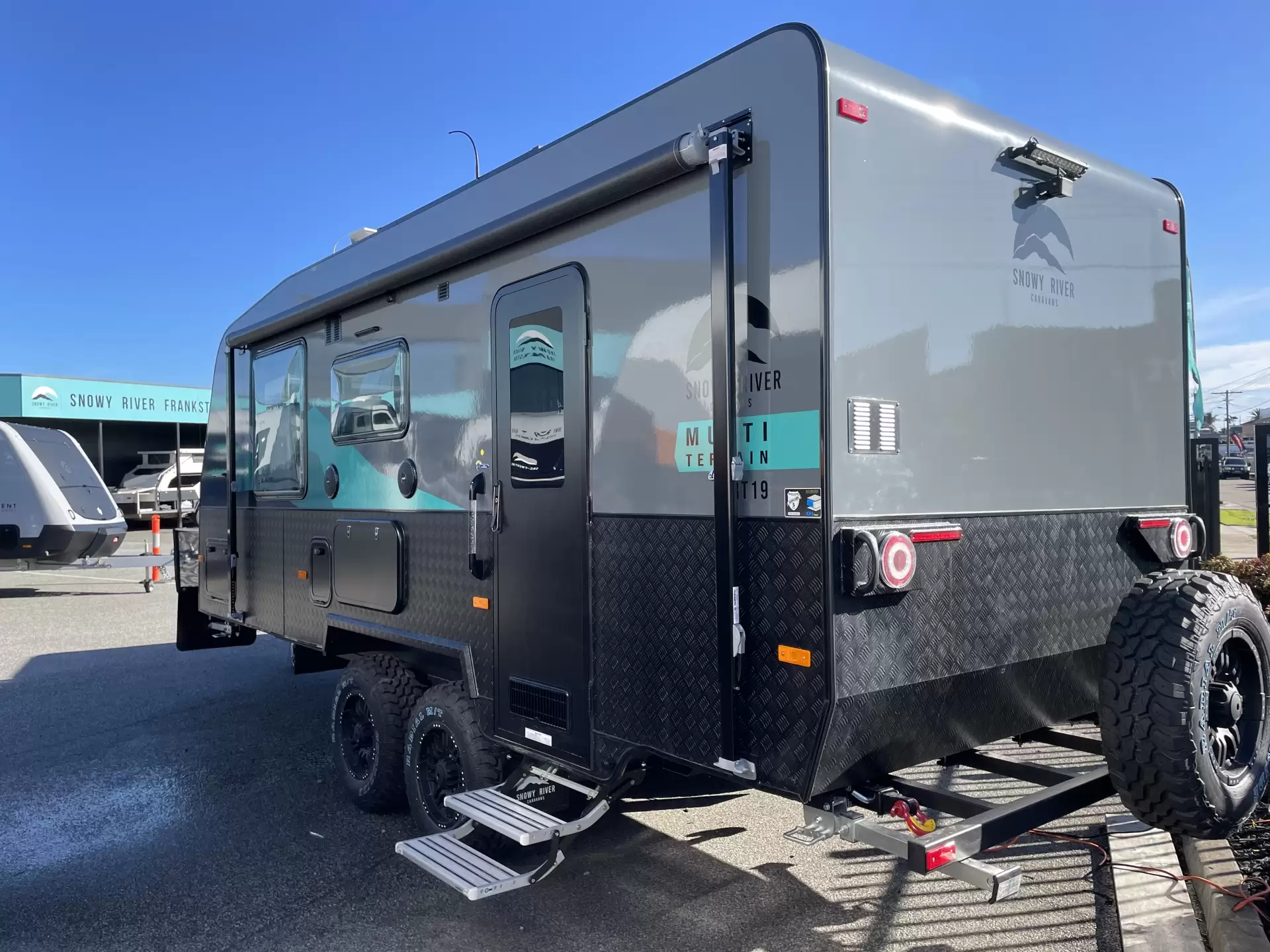 Hurry in for this runout model. One only at this price.The Multi-Terrain SRT19, an off-road capable 19ft caravan with full ensuite, dust reduction system, Independent Dual Axle Suspension, plenty of solar and Lithium battery power, Compressor Fridge,Air Conditioning, and much, much more.Don't settle for a typical outdoor adventure when you can have an unparalleled escapade with the SRT19. Let's hit the road and start exploring.