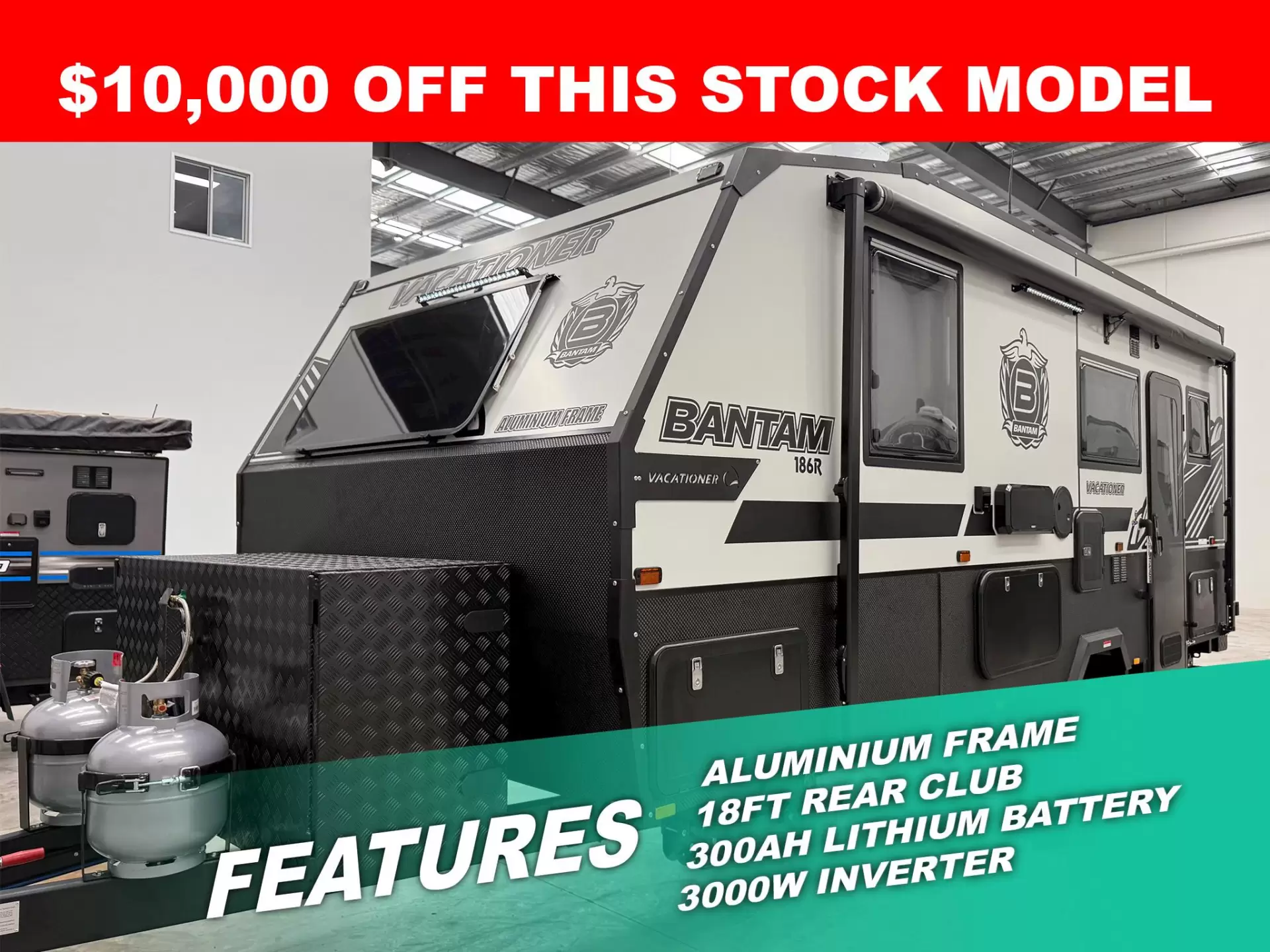 SAVE 10,000 ON STOCK UNIT - NON TRADE ONLYNEW 2025 MODEL- 18.6 SINGLE AXEL CLUB LOUNGE FULL OFF-ROAD ALUMINIUM FRAME CARAVAN WITH FIBREGLASS INTERNAL WALLS NEW BUILD PRICE - 143,990Discover the extraordinary 18-foot rear club layout! This innovative design blends the compact convenience of an 18.6-foot size with a spacious rear club lounge, perfect for relaxation and socialising on your adventures. Built for full off-road and off-grid experiences, this single-axle van boasts an impressive 3-tonne capacity, ensuring you can bring all your essentials and more.KEY FEATURESALUMINIUM FRAMEALPHA EXTREME 3T SUSPENSIONONE PIECE HIGH GLOSS WATERPROOF INTERNAL WALLS AND ROOFONE PIECE HONEYCOMB FLOORONE PIECE EXTERNAL FIBREGLASS ROOF3000W EUROFLEK INVERTER300AH HIGH DISCHARGE LITHIUM BATTERY3 X 200 WATT SOLAR PANELS (600W)TUCSON STABILITY CONTROL12V DUST SUPRESSION SYSTEMDUAL SLIDE TOOLBOX WITH FULL LENTGH TOP STORAGE SHELVESVACATIONER EXCLUSIVE ENGINEERED TRUSS CHASSISREAR WOOD BOX WITH JERRY CAN HOLDERRECESSED DO-35 COUPLINGMICKEY THOMPSON BAJA BOSS AT TYRES (265/75R16)VICTRON BMV 712 SMART BATTERY MONITORVICTRON LP CHARGER50A EUROFLEK MPPT SOLAR CONTROLLER50A EUROFLEK DC CHARGER.95L GREY WATER TANK270L COMPRESSOR FRIDGE6" A-FRAME 5MM THICKFUSION SOUND PANELBAR LIGHT WHITE/AMBER ROADSIDEBAR LIGHT WHITE/AMBER DOORSIDEWATERFALL SQUARE EDGE BENCHTOPSHEAVY DUTY SOFT CLOSE DRAWER RUNNERSTHIS VAN HAS BEEN UPGRADED WITH:GOLD AND GOLD PACK - 1650 INCLUDED IN TOTAL PRICEVACATIONER OUTSIDE CAPPING- 2,300 INCLUDED IN TOTAL PRICEPREMIUM FLOOR UPGRADE - 950 INCLUDED IN TOTAL PRICEMeet the Batam – a robust and versatile compact caravan engineered to conquer any terrain with confidence. Its durable aluminium frame is complemented by the ALPHA EXTREME 3T suspension and rugged Mickey Thompson Baja Boss AT tyres, ensuring you can navigate the most challenging landscapes with ease. Supported by a solid 5-year structural warranty, the Batam is built to withstand harsh conditions.Experience the freedom of off-grid living with the Batam's advanced power system, featuring a powerful 300AH high-discharge lithium battery, a 3000W EUROFLEK inverter, and three 200W solar panels (totaling 600W), along with Victron BMV 712 smart battery monitoring and 50A EUROFLEK solar and DC chargers. Equipped with Tucson stability control and a 12V dust suppression system, this caravan is designed for reliability in any environment.The Batam's interior reflects a commitment to excellence, showcasing one-piece fibreglass internal walls and roof, a one-piece honeycomb floor, and a one-piece external fibreglass roof, providing both structural integrity. Additional features include a dual slide toolbox with full-length top storage shelves, a rear wood box with jerry can holder, recessed DO35 coupling, and heavy-duty soft-close drawer runners. With stylish waterfall square-edge benchtops and a Fusion sound panel, the Batam elevates comfort and reliability in off-road adventures.FULL LIST OF FEATURES:***CHASSIS***ALPHA EXTREME 3T SUSPENSIONONE PIECE HONEYCOMB FLOORVACATIONER EXCLUSIVE ENGINEERED TRUSS CHASSISMICKEY THOMPSON BAJA BOSS AT TYRES (265/75R16)REAR WOOD BOX WITH JERRY CAN HOLDERRECESSED DO-35 COUPLING6" A-FRAME 5MM THICK4-ARM STRAIGHT OFF-ROAD REAR BAR6" A-FRAME 5MM THICKRECESSED DO-35 COUPLINGSAFETY CHAINS WITH CHASSIS MOUNTING BRACKETHEAVY DUTY JOCKEY WHEEL WITH CENTRE CLAMP12" BRAKES HOLROYD DRUMS16" WRATH RIMSDROP DOWN LEGSCHECKERPLATE WATER TANK GUARDSCHECKERPLATE GREY WATER TANK COVERMATTE BLACK PAINT TO CHASSIS***ELECTRICAL***BANTAM 12V VICTRON BATTERY MANAGEMENT SYSTEM3000W EUROFLEK INVERTER300AH HIGH DISCHARGE LITHIUM BATTERY3 X 200 WATT SOLAR PANELS (600W)VICTRON BMV 712 SMART BATTERY MONITORVICTRON LP CHARGER50A EUROFLEK MPPT SOLAR CONTROLLER50A EUROFLEK DC CHARGER.TUCSON STABILITY CONTROLFUSION SOUND PANELBAR LIGHT WHITE/AMBER ROADSIDEBAR LIGHT WHITE/AMBER DOORSIDEEUROFLEK OMNI DIRECTIONAL ANTENNALIGHT, 12V USB/USBC, DOUBLE 240V P/POINTS BEDROOMLIGHT, 12V USB/USBC, DOUBLE 240V P/POINTS AT SEATING AREABAR LIGHT WHITE/AMBER LIGHTS FRONT AND BACK12V FAN AT BEDROOM12V FAN AT LOUNGE12V FAN AT EACH BUNK (IF APPLICABLE)SAFETY DAVE REAR VIEW CAMERA WITH 7" CAR MONITORRV ELECTRONICS 3 GAUGE TANK DISPLAYLED STRIP LIGHT AROUND STEPWELL***PLUMBING***2 X 95L MAIN WATER TANKS95L GREY WATER TANK12V PUMPMANIFOLD SYSTEMEXTERNAL SHOWER2 X 9KG GAS BOTTLESGAS BAYONET3 WAY SINK MIXER TAP WITH BUILT IN WATER FILTER OUTLETTHETFORD CERAMIC TOILET***OUTSIDE***ONE PIECE EXTERNAL FIBREGLASS ROOF12V DUST SUPRESSION SYSTEMDUAL SLIDE TOOLBOX WITH FULL LENTGH TOP STORAGE SHELVESLED SKYLIGHT IN ROOFEUROFLEK LED HATCH OVER SHOWER & TOILETEUROFLEK FLAT BLIND WINDOWSMOULDED STEPWELL WITH LEDEUROFLEK BLACK LED PULL-OUT STEPPICNIC TABLE, KEYLESS WITH LED LIGHTSAIL TRACK ROADSIDELED ROLL OUT AWNING***INSIDE***ALUMINIUM FRAMEONE PIECE HIGH GLOSS WATERPROOF INTERNAL WALLS AND ROOFWATERFALL SQUARE EDGE BENCHTOPSHEAVY DUTY SOFT CLOSE DRAWER RUNNERSLUXURY FIXED BACK UPHOLSTERYPILLOW TOP INNERSPRING MATTRESSLUXURY VINYL FLOORING WITH FELT UNDERLAYPREMIUM SPLASHBACKSBLACK SINK, VANITY BASIN, TAPWARE & BATHROOM ACCESSORIESROBE CUTOUTSLARGE SHOWER WITH MIRRORED DOORFRAMELESS ENSUITE MIRROR WITH BACKLIT LED***APPLIANCES***270L COMPRESSOR FRIDGEFUSION MARINE AUDIO ENTERTAINMENTGREE 3.5KW INVERTER AIRCONSWIFT MINIGRILL 3 GAS & 1 ELEC MICROWAVE COMBOSWIFT 12V RANGEHOOD24" LED SMART TV INTERNALEXTERNAL ENTERTAINMENT HATCHTare: 2500 KGATM: 3000 KGBALL: 205 KGInternal Size: 18.6FT External Size: 18.6FTExplore our latest caravan models, now available with financing options. We accept trade-ins and offer consignment services. Additionally, we provide servicing, maintenance, and a wide range of accessories.Our Hours:Monday to Friday: 9:00 am - 5:00 pmSaturday: 9:00 am - 3:00 pmPlease note that we are closed on public holidaysABOUT USStep into a new age of travel with our exceptional caravan selection, where urban sophistication meets the sunseeker's delight. As you journey thr