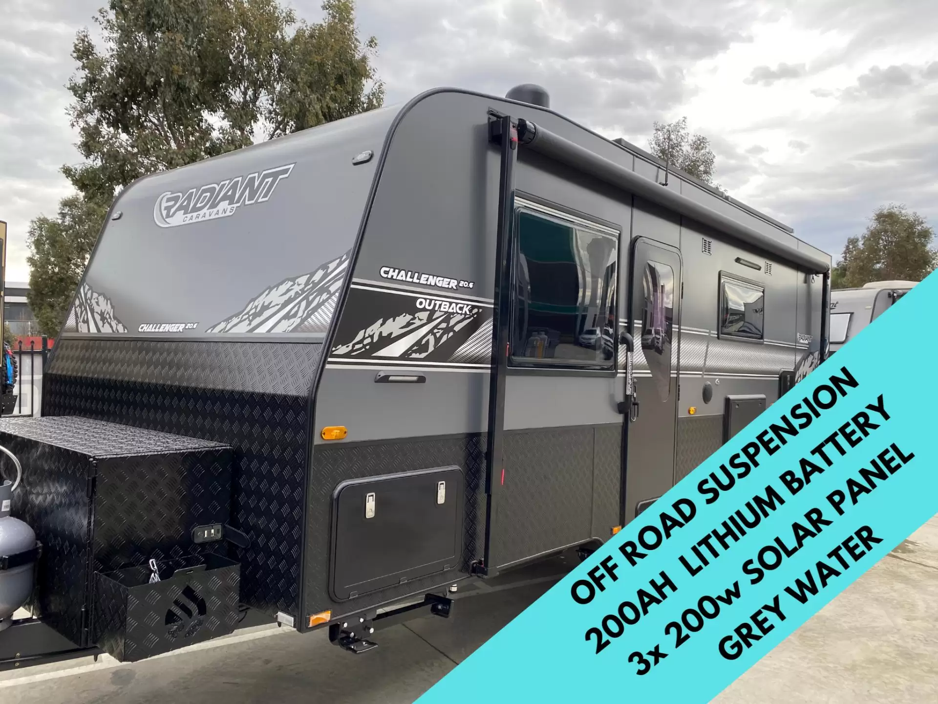 FULL OFF-ROAD WITH LITHIUM AND LOTS OF SOLAR- BEST VAULE VAN IN AUSTRALIA 2026 21.6 FT REAR CLUB LOUNGE FULL OFF-ROAD COUPLES CARAVAN KEY FEATURES Tuff Rider Independent Coil Suspension1 x 200AH Lithium batteries3x 200w SOLAR panelHoneycomb flooring- One PieceOne Piece Composite RoofDometic Dust Reduction System265/75R16 All terrain tyresLarge Front Toolbox In Black Enamal 2 Jerry Can Holders On Toolbox2 x 105L Fresh water tanks1 x 105L Grey Water tank900mm Checker Plate SidesFront stone guard 12" BrakesOutside TV Box6 ”Heavy duty A- FrameWater Fall Bench topsDO35 CouplingFUSION RA60 Radio270L Compressor Fridge GREE Air ConditionerBM PRO Battery plus35-II-HA with OdysseyInverter ProvisionSafety Dave reverse camera with Car monitor kitTHIS VAN HAS BEEN UPGRADED WITH (NOT INCLUDED IN PRICE)GOLD PACKSUBURBAN INSTANT HOT WATER SERVICE Discover the unparalleled quality and exceptional value of Radiant Caravans, the best value caravan in Australia. Designed with premium features and cutting-edge technology, this caravan ensures a luxurious and comfortable travel experience.Featuring the TUFF RIDE independent coil suspension and 16” all-terrain tyres, the Radiant caravan promises you the freedom to take this van anywhere offroad. It is equipped with a 200AH lithium battery and 3x 200W solar panels, offering reliable power for your free camping adventures. The honeycomb flooring and one-piece composite roof enhance durability and longevity. This caravan comes with a large front toolbox, a 100L grey water tank, and a front stone guard for added convenience and protection. Inside, you'll find waterfall bench tops and a spacious 270L fridge compressor for a touch of luxury. FULL LIST OF FEATURES ***CHASSIS***Tuff Rider Independent Coil Suspension - ATM 3500 KG265/75R16 All terrain tyresLarge Front Toolbox In Black Enamal 2 Jerry Can Holders On Tool Box12" Brakes6 ”Heavy duty A- FrameHoneycomb flooring- One PieceDO35 CouplingExtra chassis mounted battery boxSupa gal Chassis2x9kg Gas bottlesEntry step3 Arm heavy duty bumper barRear wood Box Front stone guard Jockey WheelBmpro TrailsafeGalvanized protection to water tanksExtended A frame - 1900mmDrop down stabilizer legsMud Flaps***ELECTRICAL***1 x 200AH Lithium batteries3x 200w SOLAR panelBM PRO Battery plus35-II-HA with OdysseyInverter ProvisionSafety Dave reverse camera with Car monitor kit1 x 12v fan in Living room 1 x 12v in each bunks *If Applicable LED ceiling down lights throughoutExternal Anderson Plug for Solar Blanket Grey Anderson Plug 50 amp12 Pin Flat car plug2 x reading lights with US B in bedroom and seating areaTv Co-ax external point1x Large heavy duty Annex lights 2 x Lights in tunnel boot LED Taillights240v 15amp inlet and 240v and 10 amp outletTV antennaLed light over sink and vanityLed strip on overhead and under kitchen***PLUMBING***2 x 105L Fresh water tanks1 x 105L Grey Water tankBlack tap ware throughoutFibreglass showerThetford Cassette toiletA-Frame mains pressure tapExternal gas bayonetFlick Mixer tapsExternal ShowerDigital water level gaugeA- Frame tap guardLockable water fillersMains Pressure inlet12v Shurflo water pump***EXTNERAL***One piece composite roofDometic Dust Reduction System900mm Checker Plate SidesOutside TV BoxRoll out AwningFront tunnel bootFold down picnic table2 x LED framed sky hatchesBubble entry door handleDouble glazed large Ranger windowsMain Entry doorCoast to coast access doorHigh quality vinyl decals12v Fan and LED hatch to shower and toilet***INTERNAL***Water fall Bench topsFrosted shower doorCeramic Vanity basinKitchen PantryQueen bed with Innerspring mattressEnsuite mirrorNooks in Robes with USB US B C and 240Hidden handles and soft open gas struts on overheadsSoft close drawersRecessed cooktop with lift-top over stoveUpholstered bed headTowel railToilet Roll holderInternal tv bracketUnder bed storage***APPLIANCES***FUSION RA60 Radio270L SPHERE fridge Washing machineGREE Air conditioner24” smart LED TVMicrowave12v RangehoodSwift 3 Gas/1 Electric, Grill and ovenTare: 2671KGATM: 3500KGBALL: 193KGInternal Size: 21.6 FT External Size: 21.6 FTExplore our latest caravan models, now available with financing options. We accept trade-ins and offer consignment services. Additionally, we provide servicing, maintenance, and a wide range of accessories.Our Hours:Monday to Friday: 9:00 am - 5:00 pmSaturday: 9:00 am - 3:00 pmPlease note that we are closed on public holidaysPLEASE NOTE PRICE IS BASED ON PICK UP MELBOURNEADD 8,000 FOR WA FRIGHT AND REGOADD 3,000 FOR NSW FRIGHT AND REGOABOUT USStep into a new age of travel with our exceptional caravan selection, where urban sophistication meets the sunseeker's delight. As you journey through uncharted landscapes, our caravans redefine what's possible. From family getaways to off-road escapes, our models offer a retreat from the ordinary. Picture yourself as a true Lotus, blossoming amidst diverse terrains with grace and elegance, whether you're conquering tough landscapes or setting up bunks for a cozy night's sleep.Our caravans are crafted with a supreme level of design and care, standing as masterpieces ready to withstand the test of time, the rugged outdoors, and the discerning eye of design enthusiasts. Just like a Snowy River carving its path, our caravans navigate through challenges effortlessly, making you a Patriot of exploration. With features like 4x4 capability, ensuite facilities, and inbuilt toilets, you have the freedom to embrace the off-road journey fully.Imagine being on the move through beautiful landscapes, unwinding in a club lounge after a day of adventure, or taking a refreshing shower amidst nature's bounty. Whether you're setting off on an off-road adventure or enjoying a night in a cozy bunk setup, our caravans are designed to offer maximum comfort and convenience. So go ahead, embrace the off-road freedom, and set out on a semi off-road journey where you become the hero of your own story.From the urban jungle to the untouched wi