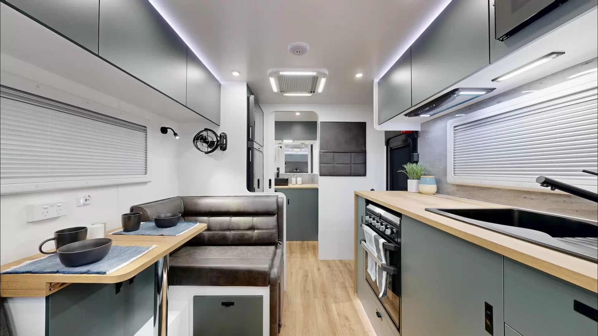 KIND BED FAMILY VAN UNDER 21 FOOT — WITH AIRBAG SUSPENSION, VICTRON OFF-GRID POWER, ALUMINIUM FRAME, AND 1000W OF SOLAR.KEY FEATURESALUMINIUM FRAME (HENROB RIVETED & TIG WELDED)AIRBAG SUSPENSION - TRACK HAWK LEVEL 2 MANUAL 4.5TONE PIECE FIBERGLASS INTERNAL WALLS AND ROOFXPS CLOSED CELL FOAM INSULATIONVICTRON OFF GRID SYSTEM – VICTRON 12V BATTERY MANAGEMENT SYSTEM VICTRON 12V MULTIPLUS 3000W-120A INVERTERVICTRON CERBO GX CONTROLLER GXTOUCH-50 MONITOR2 X 300AH (600AH) HIGH DISCHARGE IP67 LITHIUM BATTERIES2 X 30A VICTRON MPPT SMART SOLAR CONTROLLERS1 X 35A VICTRON MPPT SMART SOLAR CONTROLLERVICTRON 50A DC-DC CHARGER1050W OF SOLAR- 3 X 200W & 1 X 450W 2026 X-GEN ROUGRIDER EDGE CAPPINGX-GEN REAR WINGTRUSS CHASSISRAPTOR COATED CHASSIS12V ELECTRO JACK-JOCKEY WHEELSTARLINK MINI PROVISIONMICKEY THOMPSON BAJA BOSS AT TYRES (265/75R16)16" WRATH RIMS2 X 95L FRESH WATER TANKS110L GREY WATER TANKRECESSED DO-45 COUPLINGMINI X-GEN FRONT BOX WITH VACATIONER MUDFLAPSREAR TWIN WOODBOX WITH 1 X LID & 2 X JERRY CAN HOLDERS270L COMPRESSOR FRIDGEONE PIECE HONEYCOMB FLOORFUSION MARINE AUDIO ENTERTAINMENT12" BRAKES6" A-FRAME 5MM THICKTHIS VAN HAS BEEN UPGRADE WITH (INCLUDED IN PRICE)TRIPLE BUNK GOLD PACKIntroducing the 2026 Vacationer Rough Rider by Vacationer Caravans — a serious aluminium-frame off-road caravan built for Australia.Built with a full aluminium frame, one-piece fibreglass internal walls and roof, and a one-piece honeycomb floor, the Rough Rider uses zero timber in the walls for a waterproof, rot-free build, enhanced by XPS closed-cell foam insulation for superior thermal performance.Underneath, airbag suspension delivers ride comfort, stability, and control on rough tracks, supported by a truss chassis with Raptor coating, a 6” A-frame, DO-45 coupling, and Mickey Thompson tyres for serious off-road strength.Power comes from a full Victron off-grid electrical system with 600Ah lithium, 1050W solar, and a 3000W inverter, making it ready for extended remote touring. Finished with stealth styling, including a rear spoiler, massive front toolbox, and stealth edge capping, the Rough Rider is built tough and engineered to go the distance.FULL LIST OF FEATURES:***CHASSIS & SUSPENSION***AIRBAG SUSPENSION - TRACK HAWK LEVEL 2 MANUAL 4.5TTRUSS CHASSISRAPTOR COATED CHASSISMINI X-GEN FRONT BOX WITH VACATIONER MUDFLAPSREAR WOOD BOX WITH LID & 2 X JERRY CAN HOLDERSTIE DOWN POINTS ON CHASSIS TO HOLD UP SUSPENSION ARM4-ARM STRAIGHT OFF-ROAD REAR BARMICKEY THOMPSON BAJA BOSS AT TYRES (265/75R16)16" WRATH RIMS12" BRAKESONE PIECE HONEYCOMB FLOORRECESSED DO-45 COUPLING6" A-FRAME 5MM THICKORANGE NEON CHASSIS STRIP LIGHTINGRATED SAFETY CHAINS WITH CHASSIS MOUNTING BRACKET12V ELECTRO JACK-JOCKEY WHEELEUROFLEK DOUBLE JOCKEY WHEELCHECKERPLATE WATER TANK GUARDSCHECKERPLATE GREY WATER TANK COVERDROP DOWN LEGSVACATIONER LOGO MUDFLAPSFLAT FLOOR CHASSIS ON SOME LAYOUS***ELECTRICAL***VICTRON OFF GRID SYSTEM – VICTRON 12V BATTERY MANAGEMENT SYSTEM VICTRON 12V MULTIPLUS 3000W-120A INVERTERVICTRON CERBO GX CONTROLLER GXTOUCH-50 MONITOR2 X 300AH (600AH) HIGH DISCHARGE IP67 LITHIUM BATTERIES2 X 30A VICTRON MPPT SMART SOLAR CONTROLLERS1 X 35A VICTRON MPPT SMART SOLAR CONTROLLERVICTRON 50A DC-DC CHARGER1050W OF SOLAR- 3 X 200W & 1 X 450W 50A BLUE ANDERSON PLUG FOR PORTABLE SOLAR50A BLACK ANDERSON PLUG FOR POWER OUT IN TOOLBOX DOORSIDEVICTRON GX LTE 4G MODEM WITH 4G ANTENNA WITH 1 YEAR SIMSTARLINK MINI PROVISIONALKO ESC (ELECTRONIC STA BILLITY CONTROL)SAFETY DAVE REAR VIEW CAMERA WITH 7" CAR MONITOREUROFLEK OMNI DIRECTIONAL ANTENNA24" LED SMART TV INTERNALFUSION RA210 AUDIO SYSTEM2 X FUSION INTERNAL ROOF SPEAKERSFUSION SOUND PANELLIGHT, 12V USB/USBC, DOUBLE 240V P/POINTS IN BEDROOMLIGHT, 12V USB/USBC, DOUBLE 240V P/POINTS AT SEATING AREABAR LIGHT WHITE/AMBER LIGHTS FRONT AND BACKBAR LIGHT WHITE/AMBER ROADSIDEBAR LIGHT WHITE/AMBER DOORSIDEBAR LIGHT WHITE/AMBER ABOVE TUNNELBOOT DOORSIDESMALL ADJUSTABLE SQUARE WORK LIGHT ON FRONT WALLDOORSIDE12V FAN OVER MAIN BED12V FAN AT LOUNGE12V FAN AT EACH BUNKLED STRIP LIGHT AROUND STEPWELLPREMIUM POWER POINTS & SWITCHES***PLUMBING***ENDLESS HOT WATER SYSTEMTHETFORD CERAMIC TOILET WITH BUILT IN CABINET2 X 95L FRESH WATER TANKS110L GREY WATER TANKGREY WATER BYPASS12V PUMPBRASS MANIFOLD SYSTEMEXTERNAL SHOWER2 X 7.5KG COMPOSITE GAS BOTTLES3 WAY SINK MIXER TAP WITH BUILT IN WATER FILTER OUTLETGAS BAYONET***OUTSIDE***MINI X-GEN FRONT BOX WITH VACATIONER MUDFLAPSREAR TWIN WOODBOX WITH 1 X LID & 2 X JERRY CAN HOLDERSONE PIECE EXTERNAL FIBREGLASS ROOF2026 X-GEN ROUGRIDER EDGE CAPPINGX-GEN REAR WING12V DUST SUPPRESSION SYSTEMLED SKYLIGHT IN ROOFEUROFLEK LED HATCH OVER SHOWER & TOILETEUROFLEK FLAT BLIND WINDOWSMOULDED STEPWELL WITH LEDAUTOMATIC ELECTRIC EUROFLEK LED PULLOUT STEP2 X 7.5KG COMPOSITE GAS BOTTLESPICNIC TABLE, KEYLESS WITH LED LIGHTSAIL TRACK ROADSIDELED ROLL OUT AWNINGACCESS HATCH UNDER BED ROADSIDEFRONT WINDOW AND SHADEBIKE CARRIER TO TOOLBOXELECTRIC DOUBLE LED PULL OUT STEP***INSIDE***ALUMINIUM FRAME (HENROB RIVETED & TIG WELDED)XPS CLOSED CELL FOAM INSULATIONONE PIECE FIBERGLASS INTERNAL WALLS AND ROOFNEW VACATIONER BACKLIT BEDHEAD WITH 2026 LOGO'SWHITE LED MOOD LIGHTING LUXURY SOFT FURNISHINGS WITH A DISTINCT HIGH-END FEELPREMIUM PILLOW TOP INNERSPRING MATTRESSLUXURY VINYL FLOORING WITH FELT UNDERLAYPREMIUM SPLASHBACKSBLACK SINK, VANITY BASIN, TAPWARE & BATHROOM ACCESSORIESTITUS TECFORM METAL SOFT CLOSE DRAWER RUNNERSWATERFALL BENCHTOPSROBE CUTOUTSLARGE SHOWER WITH MIRRORED DOORFRAMELESS ENSUITE MIRROR WITH BACKLIT LEDSLIDING DOOR TO ENSUITEMIRROR DOOR SHAVING CABINET WITH SHELVES***APPLICANCES***270L COMPRESSOR FRIDGESWIFT HAWK TWIN INDUCTION HOBNCE 4 IN 1 MICROWAVE OVEN IN DOORSIDE KITCHENGREE 3.5KW INVERTERAIRCONFUSION MARINE AUDIO ENTERTAINMENT12V RANGEHOOD24” LED SMART TV INTERNALEXTERNAL ENTERTAINMENT HATCHFUSION EXTERNAL STEREO PANEL3KG WALL MOUNT WASHING/DRYER ON SOME LAYOUTSPLUS MUCH MORETare: 3210KGATM: 4500 KGBALL: 240KGInternal Size: 20.9 FTExternal Size: 20.9 FTExplor
