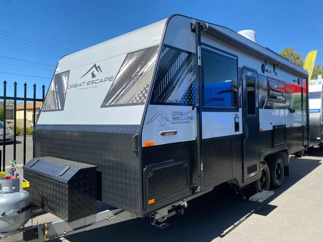 Great Escape Caravans – Magnum 21'6 CD Special Edition Ready to take your travels to the next level? The Magnum 21'6 CD Special Edition is designed for couples who want the freedom to roam without sacrificing comfort. Whether you’re hitting the open road for a weekend getaway or embarking on an extended adventure, this van has everything you need to stay off-grid and off the beaten path. Built on a solid 6” heavy-duty chassis with an extended A-frame, the Magnum is made to handle Australia’s diverse terrain. The rocker roller 3,200kg suspension ensures a stable and smooth tow, so you can focus on the journey ahead. Off-grid capability? Covered. With 2 x 95L fresh water tanks, a 100L grey water tank, and dual 135Ah AGM batteries powered by 2 x 200W solar panels, you’ll have the power and resources to explore further. The Victron battery charger keeps everything running, so you never have to worry about energy supply. Step inside, and you’ll find a home away from home. The 175L compressor fridge/freezer keeps your food and drinks perfectly chilled, while the reverse cycle air conditioning ensures year-round comfort. And with a 2.5L top-load washing machine on board, staying fresh on the road has never been easier. With the Magnum 21'6 CD Special Edition, you’re not just buying a caravan—you’re unlocking the freedom to travel your way, with all the comforts of home wherever you park. Your next adventure starts now.