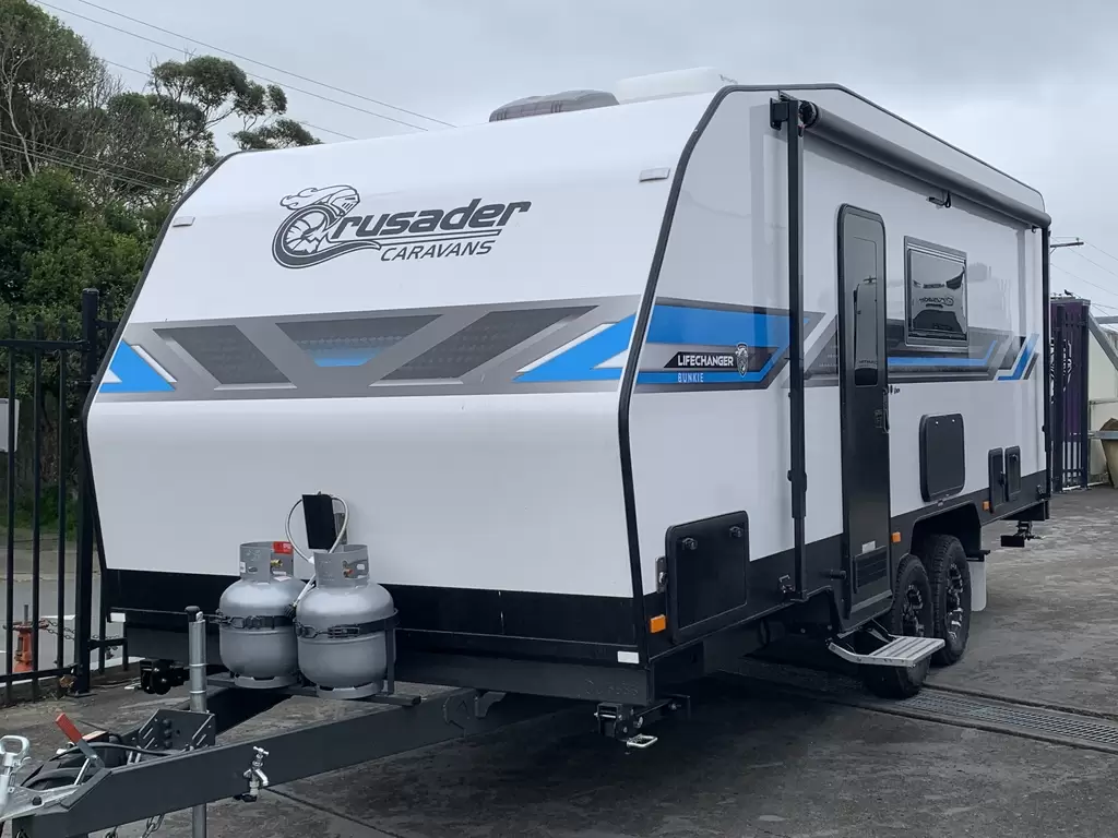 2025 PLATE CLEARANCE SALEWas 84,990, Now 75,990The Lifechanger Bunkie is a family-friendly caravan featuring dedicated bunks for the kids, making it both practical and stylish for family adventures. This layout maximises comfort and convenience, ensuring memorable experiences at an accessible price.Some of the features in the Bunkie include:- Queen size bed with 6'2" Innerspring Mattress-4 Burner Gas Cook Top-Gas/Electric Hot Water Service- Top Load Washing Machine-2 x 110L Fresh water tanks-A frame mounted water tap- Gas Bayonet fitting to front of van-1x 200w Solar Panel- 24" LED TV with King Omni pro Antenna-10" Electric Drum Brakes-15" Alloy Wheels-Manual Roll out awningThis van is also fitted with extras such as:- Independent suspension- 135a/h Lithium battery- 15x235 A/T TyresPlus much much more !We are located at Gateshead, 15 minutes south of the Newcastle CBD, Newcastle's biggest and ONLY Crusader Caravan Dealership. Offering both new and used vans. We can also cater to all of your service, insurance repair and spare parts needs.