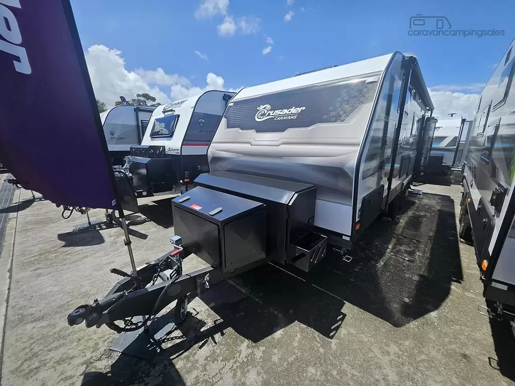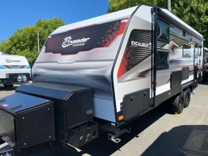 2025 PLATE STOCK CLEARANCE SALE!!**WAS 126,990 NOW 117,990Indulge in the lavish Excalibur Serenity, where sumptuous surroundings meet practicality. Relax in style with a spacious side club lounge, designed to make your caravanning experience both luxurious and comfortable.The Excalibur range takes luxury to new heights offering a sophisticated and opulent experience for those who demand the finest in caravanning experiences.Functionality remains at the forefront, featuring a Victron battery management system and solar power, perfect for weekend getaways. This gives you extra power to enjoy the outdoors in style, no matter where your adventures take you.The new Excalibur features a stunning exterior design with bold lines and dynamic angles, taking sophistication to new heights. Inside, we completely redesigned the interior to create a truly exclusive and luxurious living space.The robust construction, featuring a 40mm one-piece front, roof, and back wall, ensures exceptional strength and insulation, delivering a remarkable caravanning experience.Some of the standard features include:*DO35*3.7-Tuffride independent suspension*Toolbox*Dometic freshjet 7 pro air con*washing Machine*Victron 2000W inverter*3x200W Solar pannels*Rear Camera*External ShowerAnd much much more!!!We are located at Gateshead, 15 minutes south of the Newcastle CBD, Newcastle's biggest and ONLY Crusader Caravan Dealership. Offering both new and used vans. We can also cater to all of your service, insurance repair and spare parts needs.