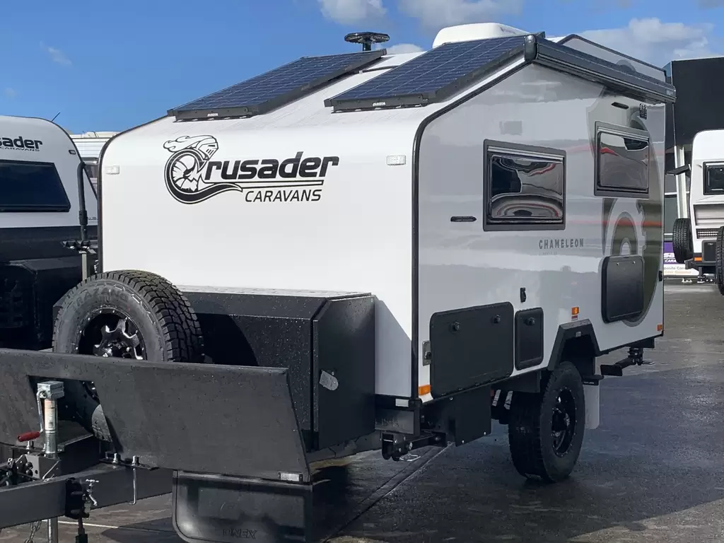 2025 PLATE STOCK CLEARANCE SALE!!**WAS 68,490 NOW 62,990**The Crusader Chameleon is a compact, feature-packed caravan designed for adventurers who want comfort without compromising on mobility. The Chameleon is known for its sleek design, off-road capabilities, and intelligent use of space, making it ideal for couples or solo travellers seeking versatility and durability.Length 12ftTare 1497ATM 2700Standard features include-135AH Lithium battery-2 Fresh water tanks 110L-1 Grey water tank 110L-2 200W Solar panels-170L Compressor fridge-4 Gas burner cooktop-24-inch Smart TV-Queen size bed that can convert to single beds-Combination shower and toilet-Wireless reverse camera-D035 hitch-Independant suspension and much more !!We are located at Gateshead, 15 minutes south of the Newcastle CBD, Newcastle's biggest and ONLY Crusader Caravan Dealership. Offering both new and used vans. We can also cater to all of your service, insurance repair and spare parts needs.