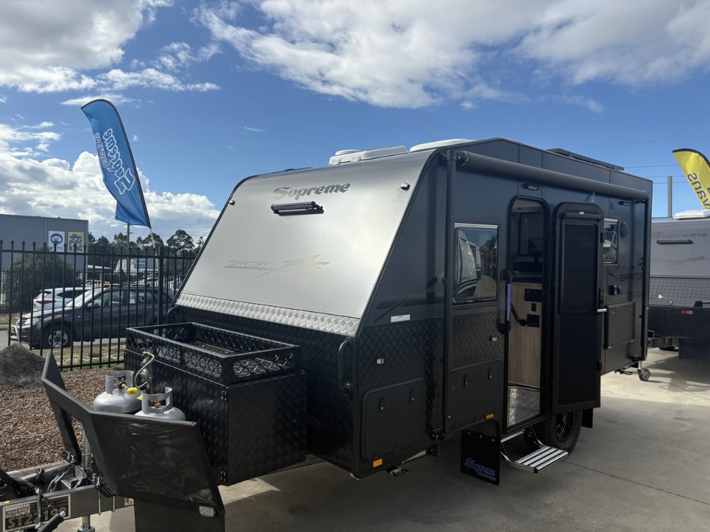 2026 Supreme Territory Hybrid Full Offroad Couples Van!! 91,490 Driveaway! DON'T DELAY CALL NOW - 02 4988 7300Australian Caravan Centre - 1 Whealan Close, Heatherbrae, NSW 2324Sales Opening hours: Monday to Friday 9am - 5pm Saturday 9am - 4pm Sunday: CLOSEDThis full offroad couples van has all the amenities you would look for in a caravan and more. It is spacious, modern, and luxurious inside and out, perfect for touring in style! The ultra-comfortable home on wheels with supreme quality appliances will give you a unique experience beyond your expectations.2026 Supreme Territory Hybrid (1560_C_K1E3_S) Tare: 2208kgATM: 2708kgGVM: 2505kgBall: 203kgThis Caravan is loaded with features including:Internal Features:*Stovetop 3 gas / 1 Electric Burner & Grill*Microwave, Convctional Oven, Airfryer Combo Unit*188L Dometic Compressor 2 Door Refrigerator/Freezer*Radio/Bluetooth Audio System With 2 x Internal Speakers*Lightweight 15mm Ply*Overhead Cupboards*Robes With Bedside Nooks*Lift Up Under Bed Storage*240V/12V Power Points Throughout* Large L Shaped Style Seating with Nuova Mapa Table *Roof Mounted Air Conditioner With Remote*LED Strip Light In Step Well*LED Strip Lights Throughout*Full Large Ensuite *Ample Amounts Of Storage*Piano Hinges*Curtains & Pelmets*Instant Hot Water System*2 x Wall Fans External Features:*Roll Out Awning *6" Permagal Australian Steel Chassis*3000kg Cruisemaster ATX Coil Suspension*12' Brakes, 16" Alloy Wheels*1 x Matching Spare Wheel*2" Riser*Scrub Bars*DO-35 Hitch*Recovery Points To Chassis*2 x Water Tanks & Grey Water Tank*Mesh Tray Under A-Frame*2 x 9kg Gas Bottles*300Ah Lithium Battery*3 x 210W Solar Panels*Red Arc Manager 30 Battery Management System With Built In DC2DC Charger and RV display*White and Orange LED Annexe Lights*Winegard Air 360 LP Antenna*LED Light Bar Front & Rear*Picnic Table*Jerry Can Holder*2 x External Speakers*Tunnel Boot*4 Arm Rear Bumper*Pull Out Step*BBQ Gas Point*Reverse Camera*External Shower*External TV Entertainment Hatch*Toolbox With Generator Slide, Fridge Slide, Firewood Box and 450mm A frame extension*Stoneguard on A FrameLive your Life, Live your Dream,Live Supreme.2026 Model Supreme Territory HybridStock Number: 16916Support local manufacturing, we are proudly Australian made and owned. With over 30 years' experience in designing & building modern caravans. There's something uniquely Australian about Supreme and Leader caravans.Over 30% of our stock gets sold before making it onto the web... If you have fine-tuned your search & know what you are looking for, we will help you find it quickly, easily & at a good price! We also provide in-depth, personalised handovers to ensure you are safe and comfortable on your next journey.