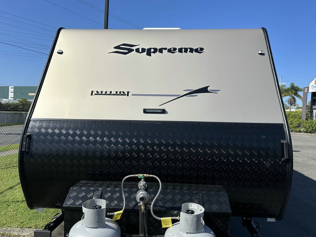 DON'T DELAY CALL NOW - 07 5507 6500Australian Caravan Centre - 2 Junction Road Burleigh Heads Sales Opening hours: Monday to Friday 9am - 5pm Saturday 9am - 4pm Sunday: CLOSEDThis semi-off road model van has all the amenities you would look for in a caravan and more. It is spacious, modern, and luxurious inside and out, perfect for touring in style! The ultra-comfortable home on wheels with supreme quality appliances will give you a unique experience beyond your expectations.Supreme Executive (2200_R_K3E7_T) 100,990.00 Drive Away!!Tare: 2741kgATM: 3391kgGTM:3178kgBall: 213kgThis Caravan is loaded with features including:Internal features:*Oven, 3 gas / 1 electric burner and grill*Convection & Microwave combo*Dometic RUC6408X 180L compressor fridge/freezer*Bluetooth/radio audio system with 2 internal speakers*Lightweight 15mm ply with beautiful matt finish interior*240V/12V power points throughout*Bedside nooks with overhead storage*Large Rear Club Seating*Dometic Freshjet 7 Series Pro roof-mounted air conditioner w/ remote*LED lights inc strip light in step well*Large Centre Ensuite*Ample amounts of storage*Gold tapware*Camec 4kg Washing Machine*2 x 12V wall fans*Magazine pocket board*LED strip lights to overhead cupboards*Hidden handles to all OHCs*Piano HingesExternal features:*Roll out awning* Permagal 6'' chassis*300mm A-frame Extension*Roller Rocker 3500kg axle*12inch brakes*16 inch tyres*Standard 50mm Ball Coupling*1 x spare tyre*Toolbox for added storage*2 x Water tanks Grey water tank*Mesh tray under A-Frame*2 x 9kg gas bottles*300ah lithium battery*Wineguard Air 360 Antenna*Sheathing to all pvc pipes*800mm high checker plate*REDARC Manager 30 BMS *2 x 210W solar panels*5 Black annexe Lights*Picnic table*2 x external speakers*External Tv Box*External Shower*Tunnel boot*4 arm rear bumper*Pull out step*BBQ gas point*Reverse cameraLive your Life, Live your Dream,Live Supreme.2026 Supreme Executive Support local manufacturing. We are proudly Australian made and owned with over 39 years' experience in designing & building modern caravans. There's something uniquely Australian about Supreme and Leader caravans.Over 30% of our stock gets sold before making it onto the web… If you have fine-tuned your search & know what you are looking for, we will help you find it quickly, easily & at a good price! We also provide in-depth, personalised handovers to ensure you are safe and comfortable on your next journey.