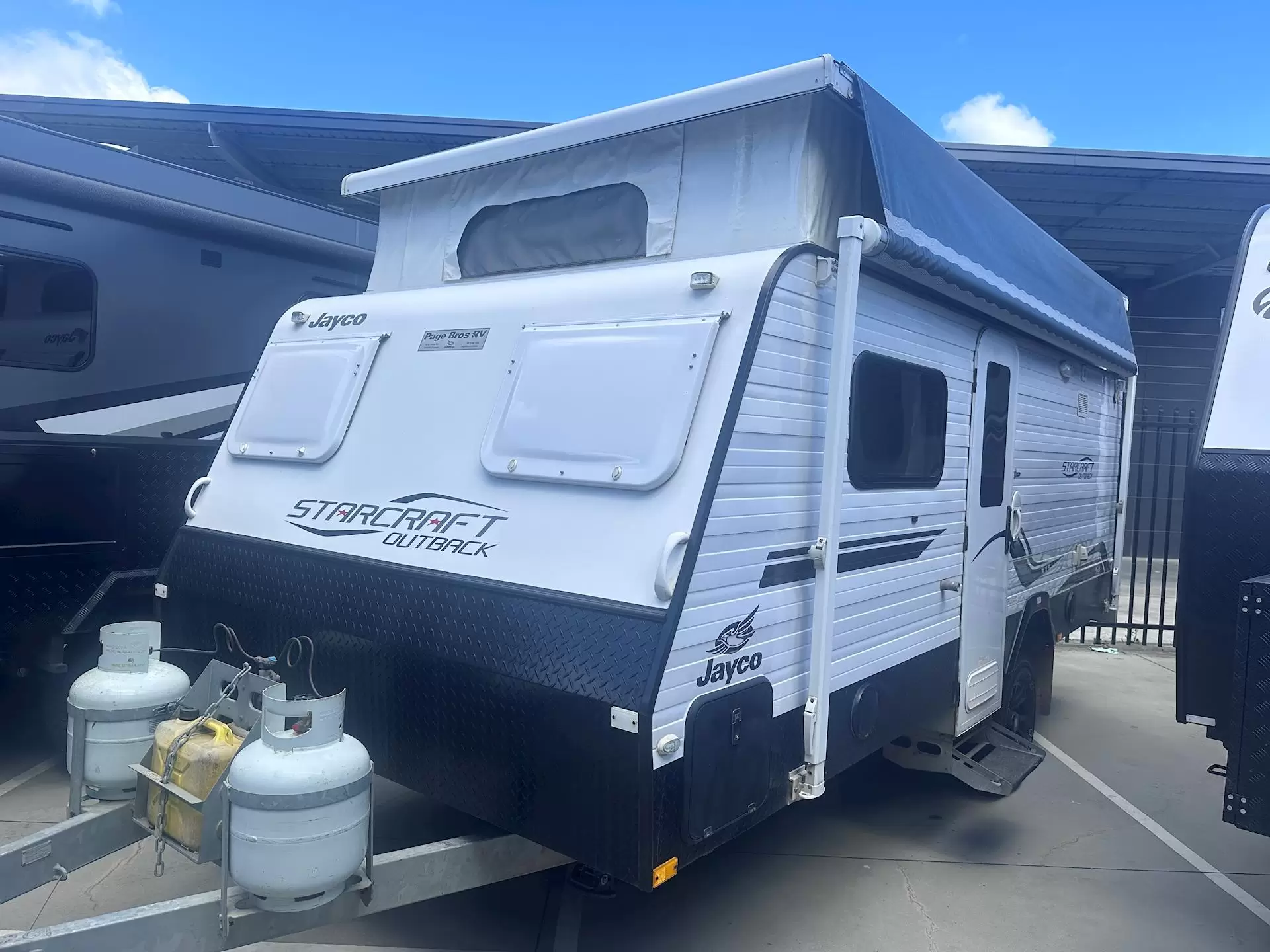 2017 Jayco Starcraft Outback Poptop (Model 16.67-4) – Adventure Ready! Hit the road in comfort with this well-maintained 2017 Jayco Starcraft Outback Poptop, perfect for couples looking for a reliable, feature-packed van. Easy to tow and loaded with extras, it’s ready for your next getaway!Spacious single bedsComfortable L-shaped lounge with drop down table legFull ensuite with Thetford toilet, towel rails & storageFlyscreens & privacy screens on all windowsDometic 3 burner gas cooktop 240v element & grill3-way Thetford fridge/freezerSphere microwave & TVFusion stereo systemJ-Tech independent suspensionHitchmaster D035 off-road hitchSolar panel and lithium battery2 X Sirocco fansWind-up antennaPlenty of USB, 12v & 240v power outlets (incl. external)Truma air conditioningDiesel heater Gas & electric hot water system12v LED lighting throughoutDual water tanks Water & battery monitors12v water pumpTunnel bootStorage under bedsFold-up step & lockable screen doorTough black checker plate protectionRoll-out awning External speakers, gas outlet & fold-down table2 x external water taps on A-frameWind-down corner stabilizersEasy and stable towing2 x 9kg gas bottlesWind-down corner supports