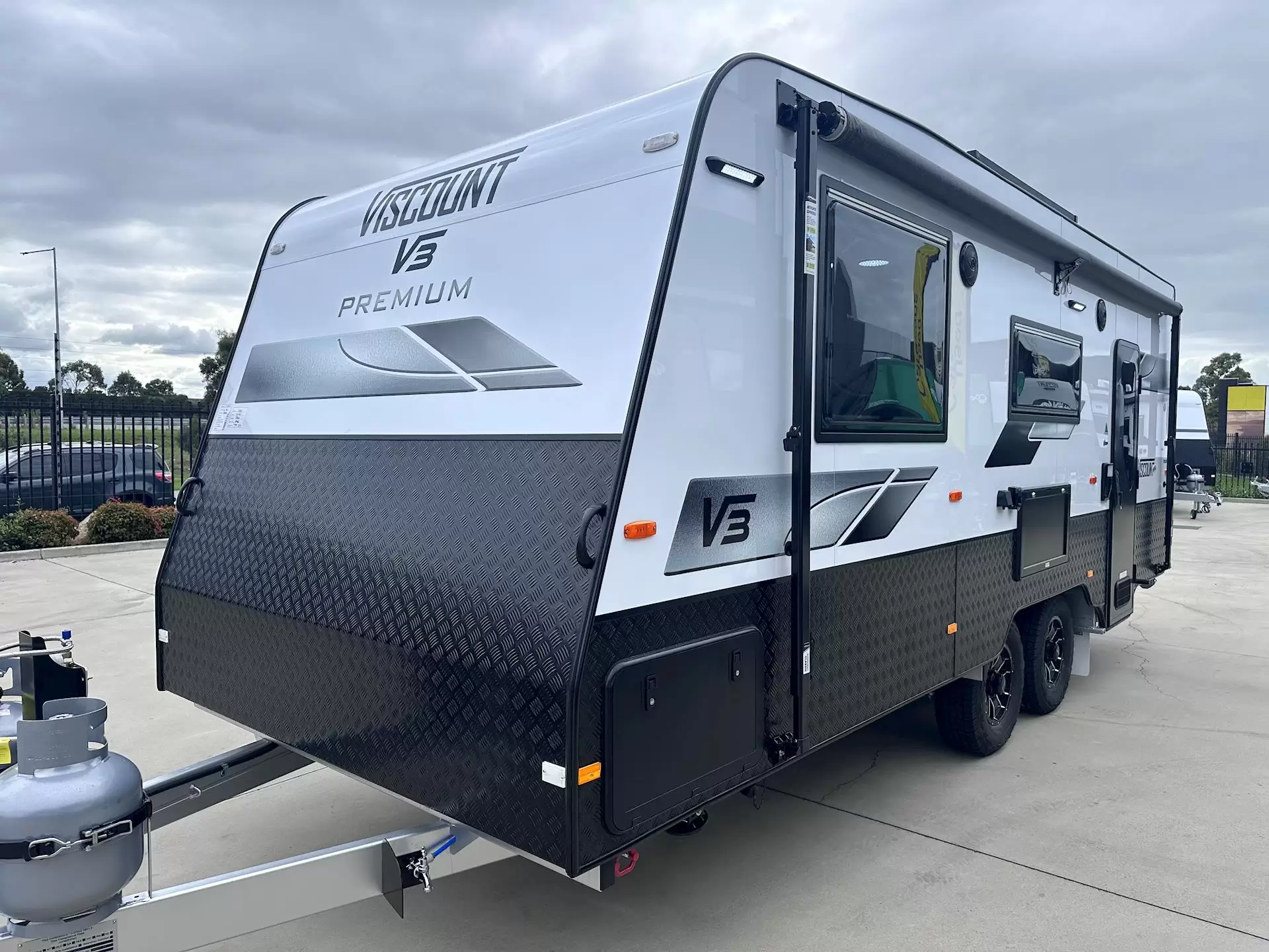 This Viscount V3.5 is fully loaded and ready to tour! Optional Extras Included : Premium Pack – LED feature strip lighting, premium upholstery, full padded bedhead, slide-out footrests, extra annex lighting, smooth composite aluminium panelling with checkerplate sides ________________________________________ Packed with Standard Features:•6’8” Interior Ceiling Height•200W Solar Panel•Reverse Camera In-Car Monitor•Top Load Washing Machine•24” Smart TV•2 x 95L Water Tanks•Full Galvanised Tunnel Boot•Thetford N4175 Fridge•Water Filter & Tap•Pull-out Pantry•12V Plug at Dinette•External Picnic Table•Gas/Electric Hot Water System•External TV Point, 12V Plug & Speakers•Full Oven 4 Burner Cooktop•HV TV Antenna•Fully Moulded Shower•110amp AGM Battery (Chassis Mounted)•15” Wheels & Tyres•Recessed Cooktop for Extra Bench Space________________________________________ The Viscount V3.5 – Designed for the Modern Touring CoupleComfort. Function. Style. Value.