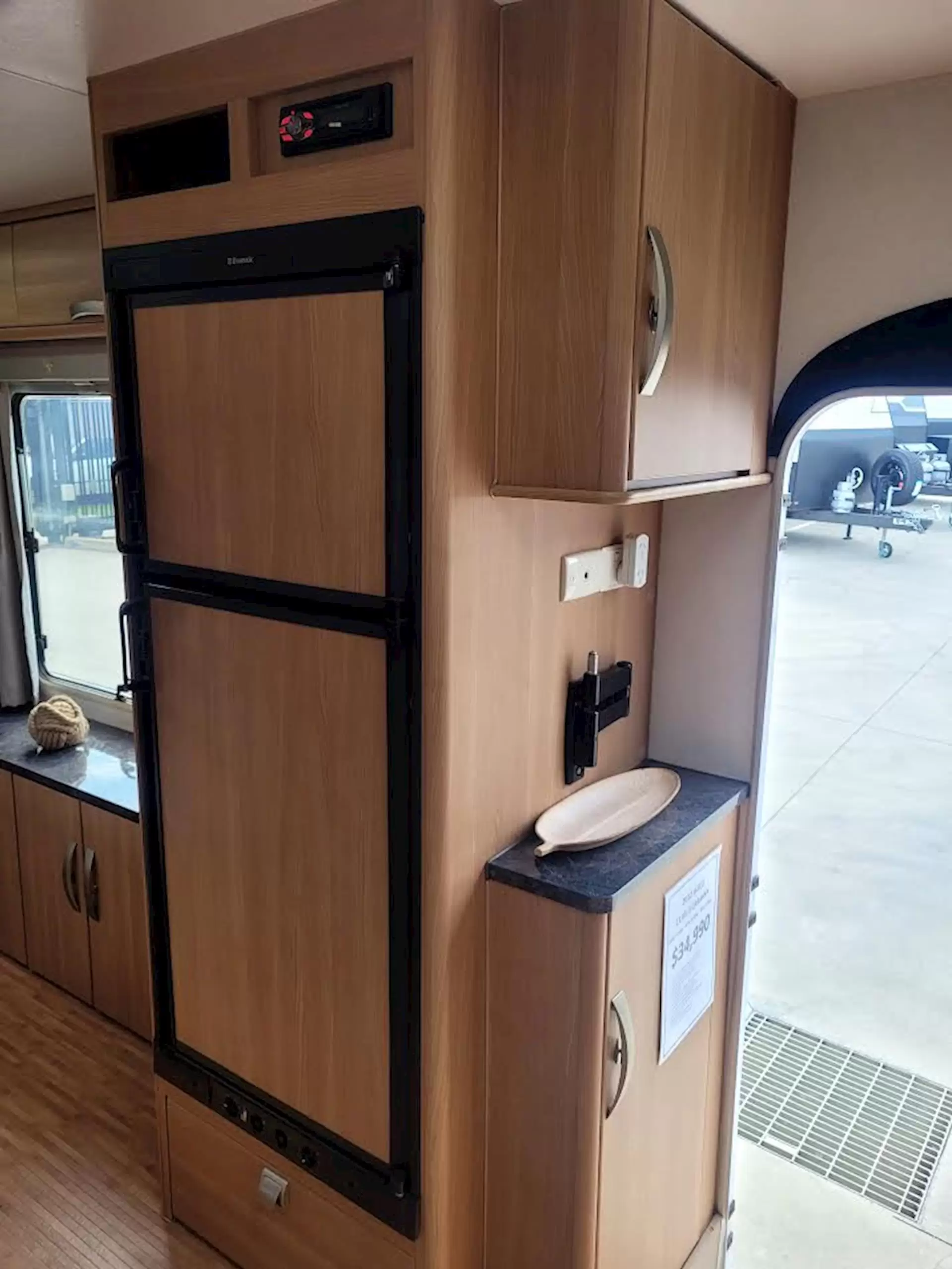 The SRL-220S is a 22ft luxury caravan with a slide-out bed, designed for modern adventurers. It features an east-west queen bed, a spacious rear ensuite with a separate shower and toilet, and a fully equipped kitchen. With a smart, open layout and premium finishes, the SRL-220S ensures your comfort at all times, no matter where the road leads.Factory options fitted to this caravan include DO35 hitch, Grey Water tank with gauge, and 2 fans mounted on the ceiling at the foot of the bed.